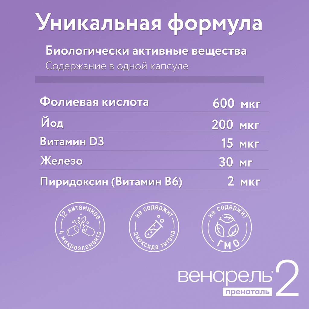 Венарель Пренаталь 2 Второй и третий триместры и кормление грудью капсулы массой 1542 мг 30 шт