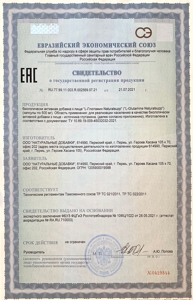 Документы NaturalSupp L-Глютамин/L-Glutamine Naturalsupp капсулы по 500 мг 60 шт