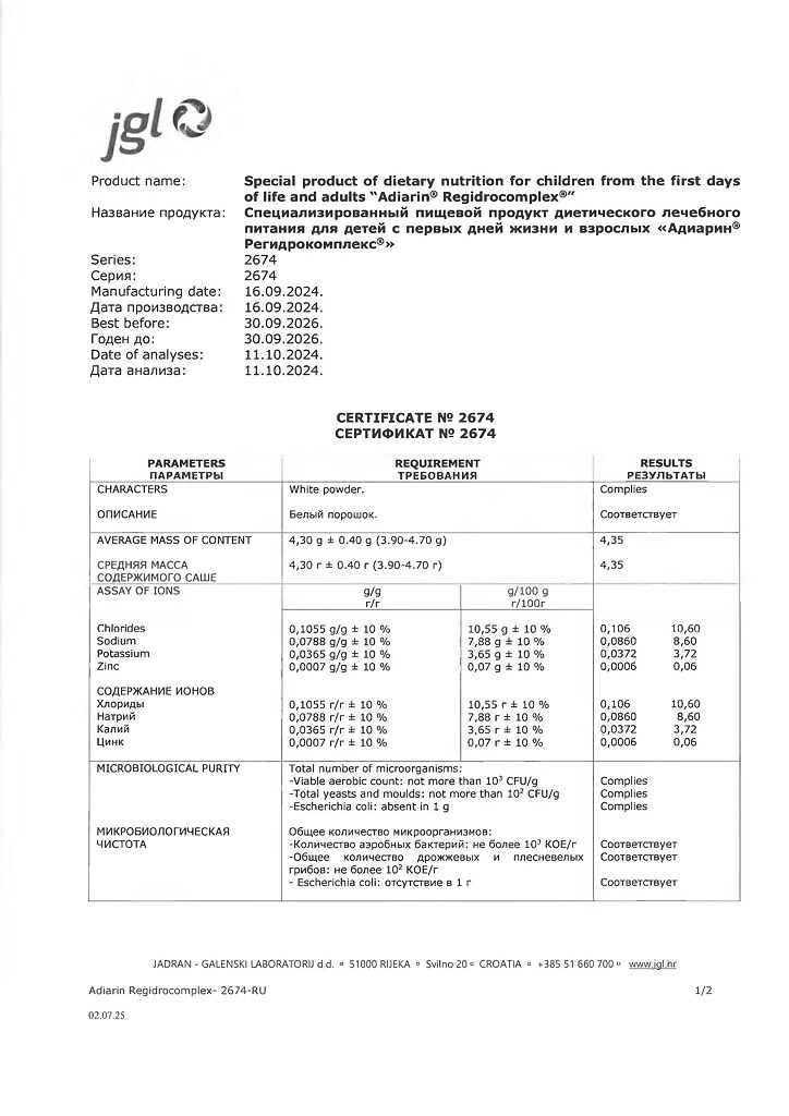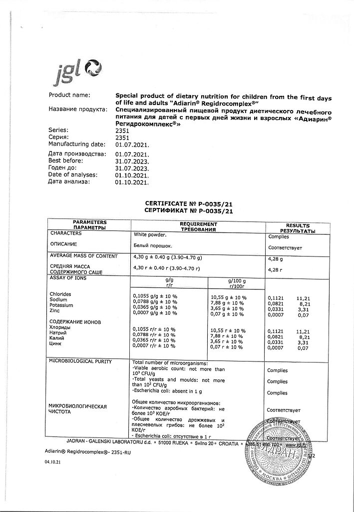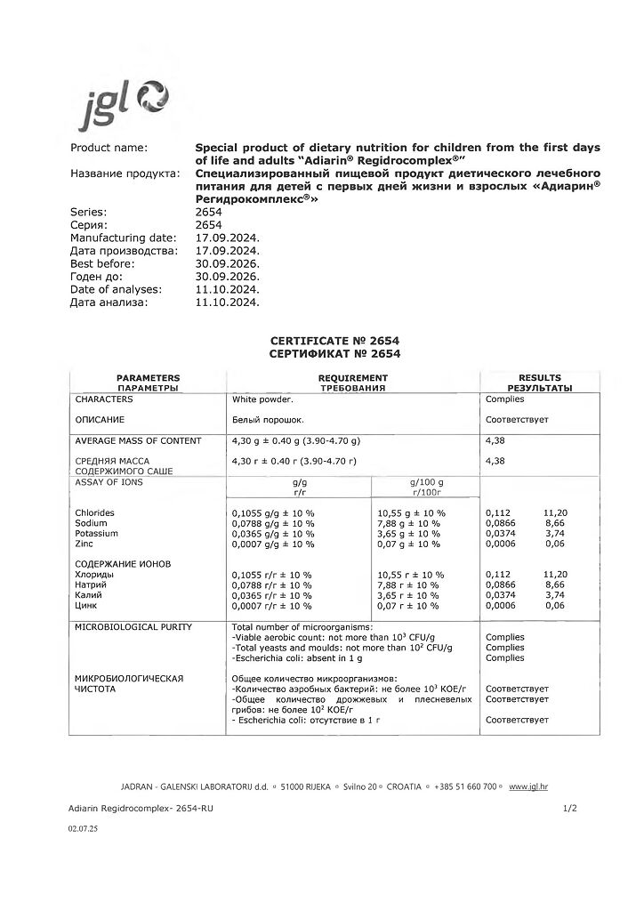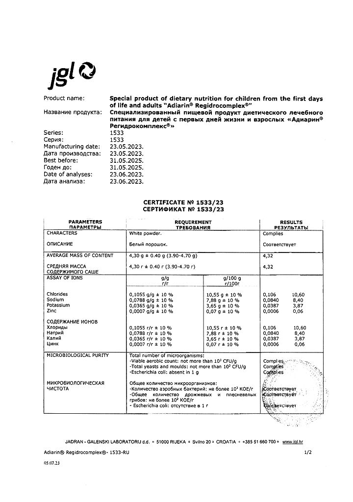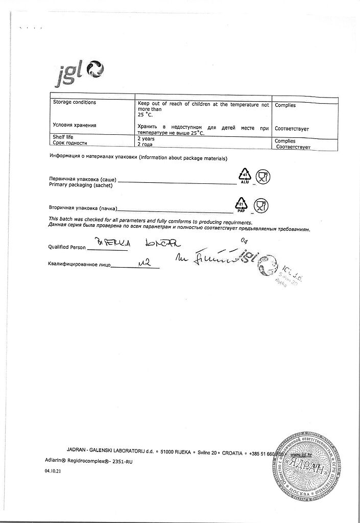 Адиарин Регидрокомплекс саше 4,3 г 10 шт
