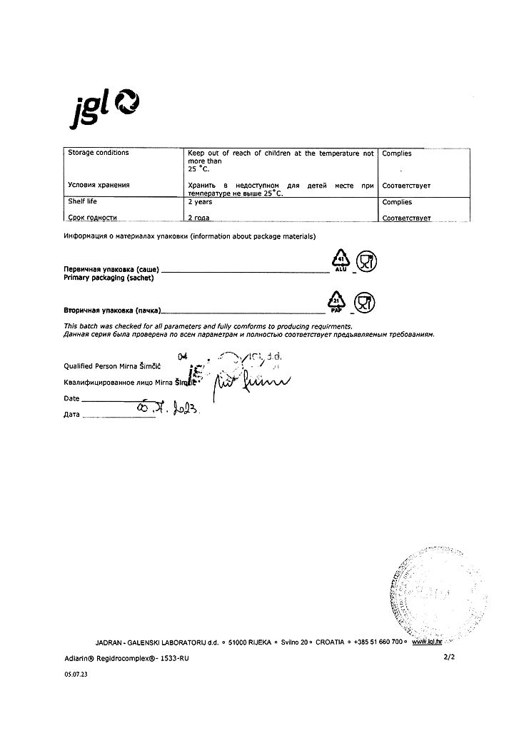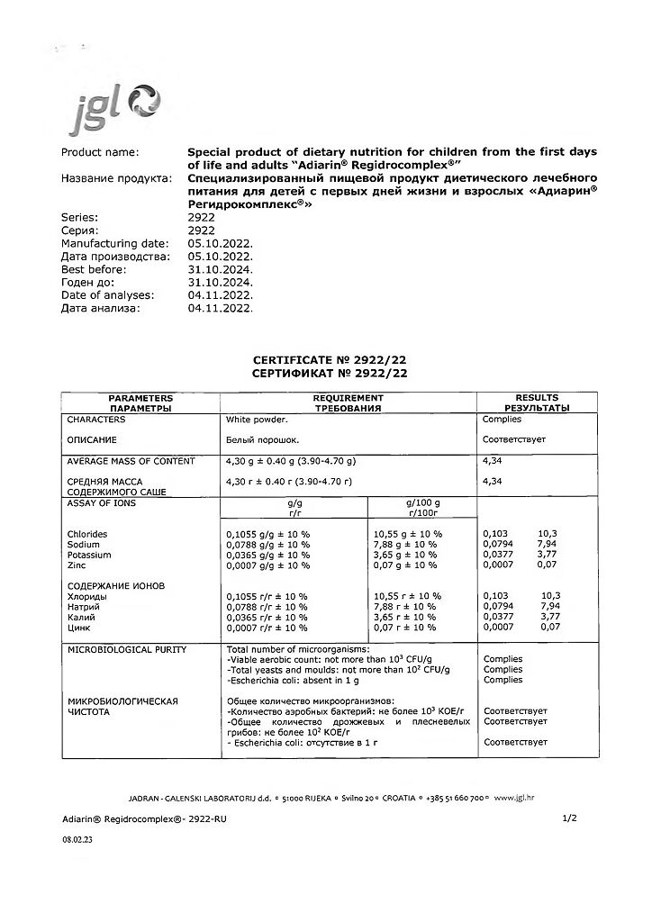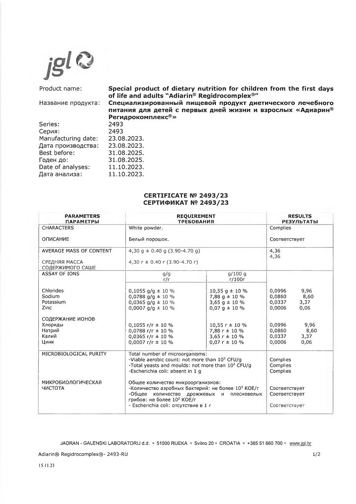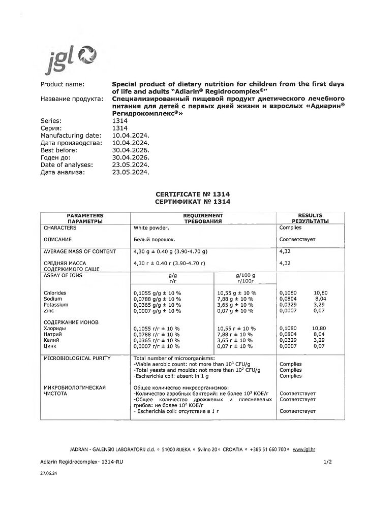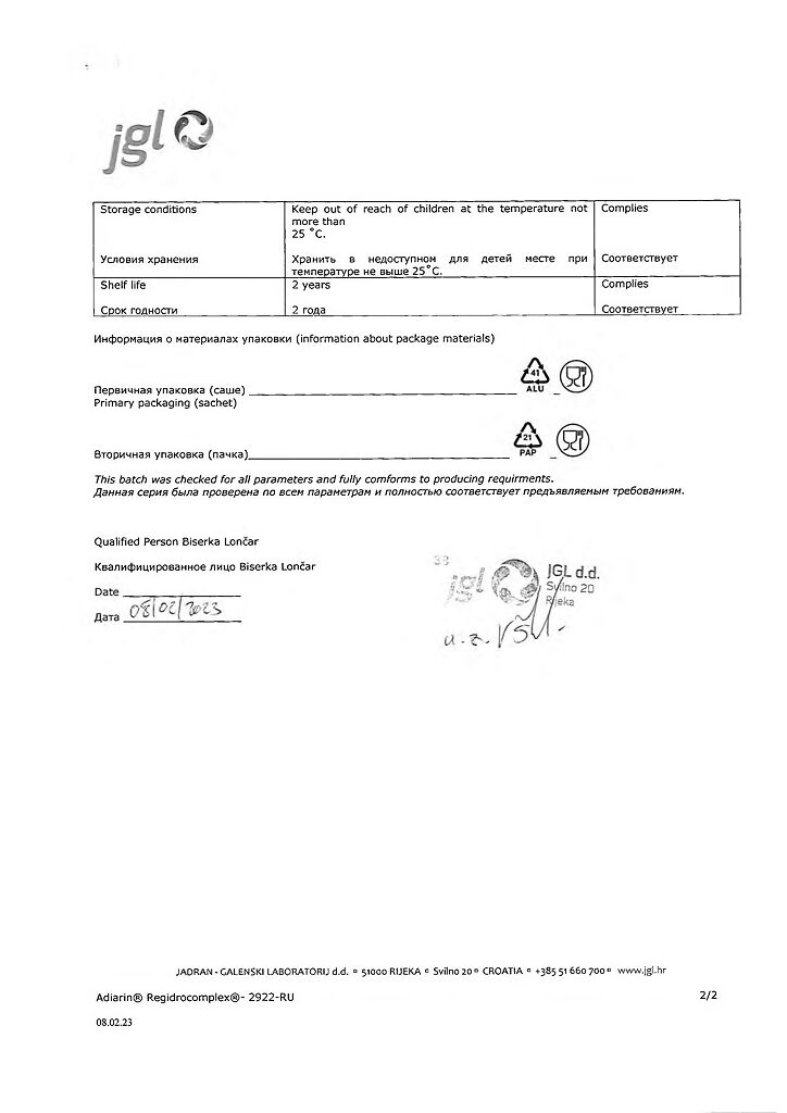 Адиарин Регидрокомплекс саше 4,3 г 10 шт