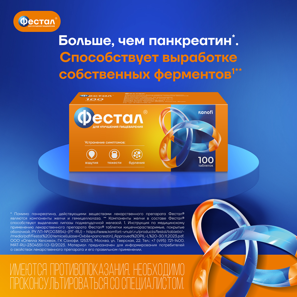 Препарат компенсирует недостаточность внешнесекреторной функции поджелудочной железы за счет панкреатина, и желчевыделительной функции печени за счет желчного компонента. Фестал оказывает протеолитическое, амилолитическое и липолитическое действие. Входящие в состав панкреатина ферменты: амилаза, липаза и протеаза облегчают переваривание углеводов, жиров и белков, что способствует их более полному всасыванию в тонком кишечнике. И в этом отношении Фестал практически не отличается от других ферментных препаратов.