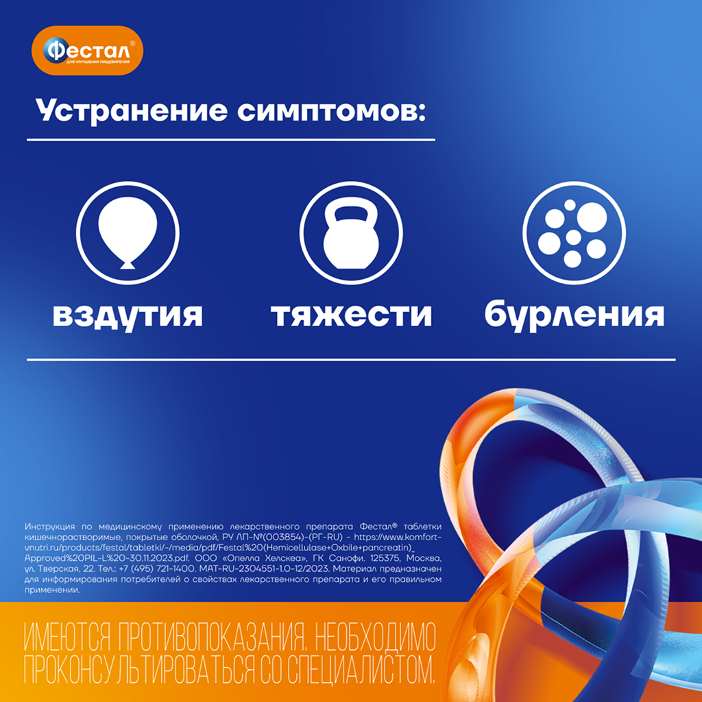 У детей с муковисцидозом, принимающих панкреатин в высоких дозах (значительно превышающих рекомендованные для препарата Фестал®) или в течение длительного периода времени, были зарегистрированы случаи сужения толстой кишки (фиброзирующая колонопатия), кишечной непроходимости и запора. Поэтому при сохранении или усилении жалоб, или возникновении каких-либо дополнительных симптомов пациенту рекомендуется проконсультироваться с лечащим врачом.