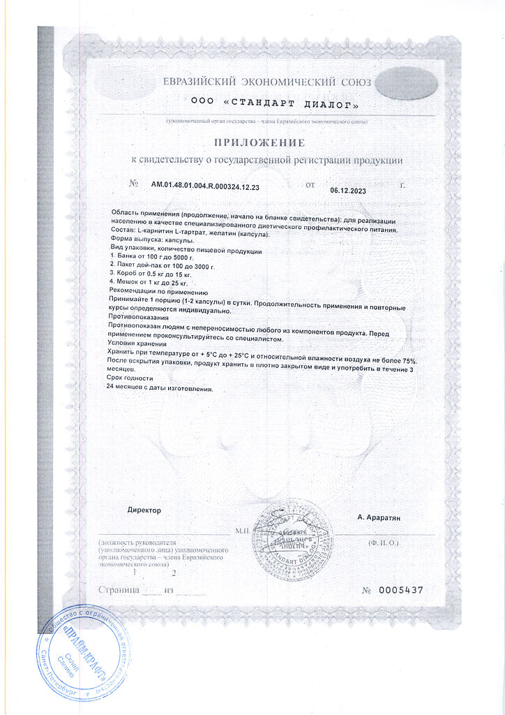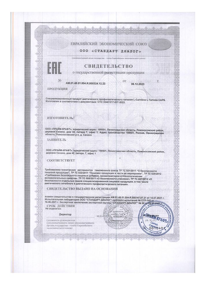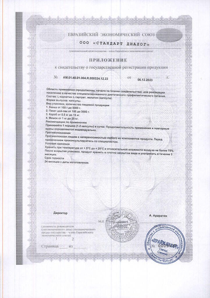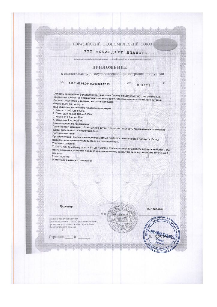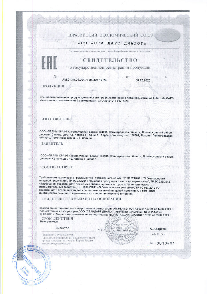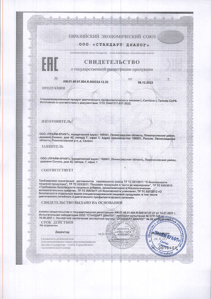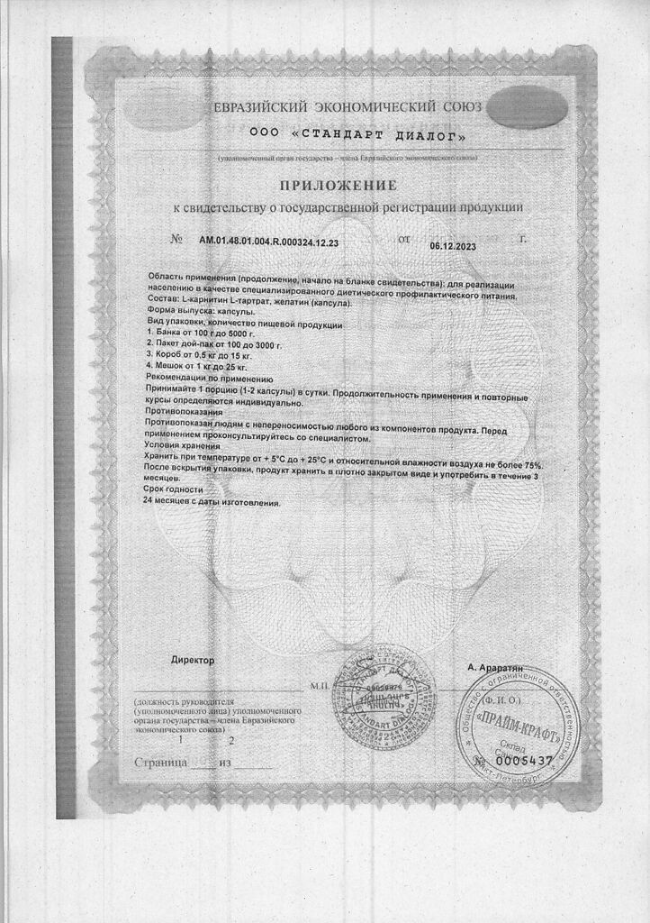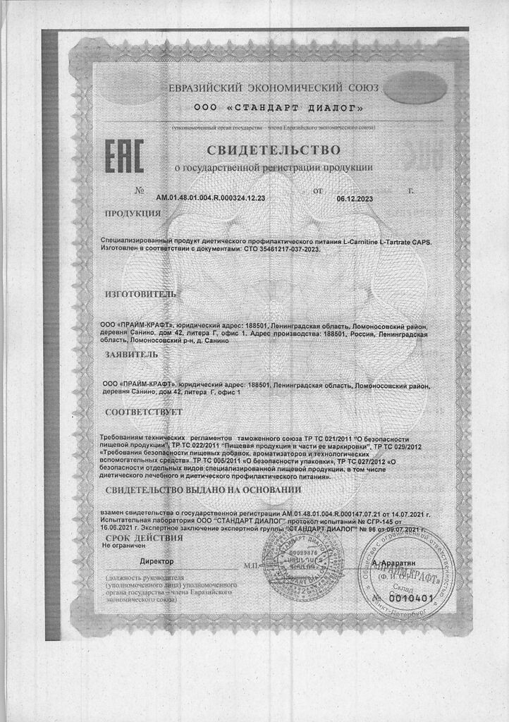Все варианты L-карнитин L-тартрата/L-Carnitine L-Tartrate Prime Kraft