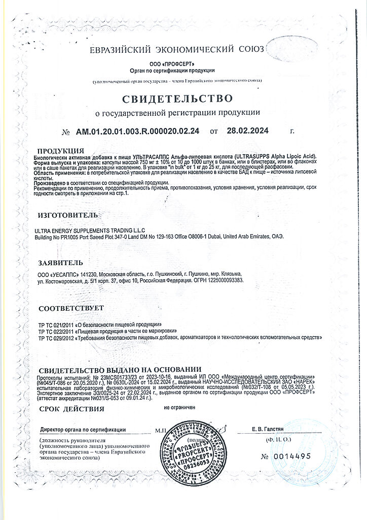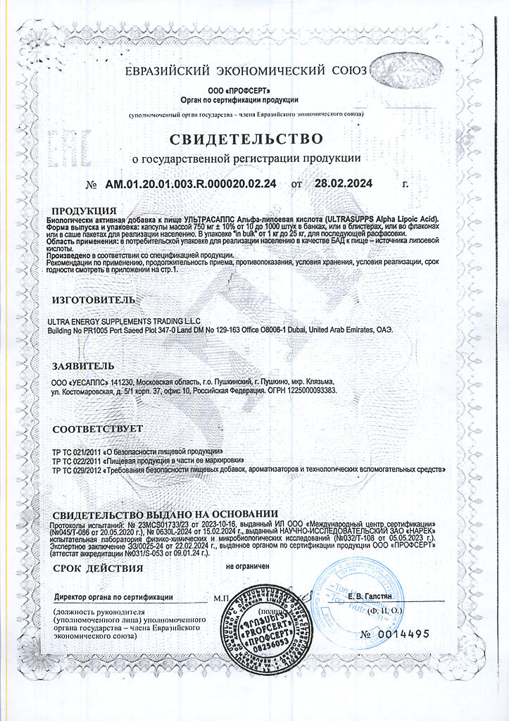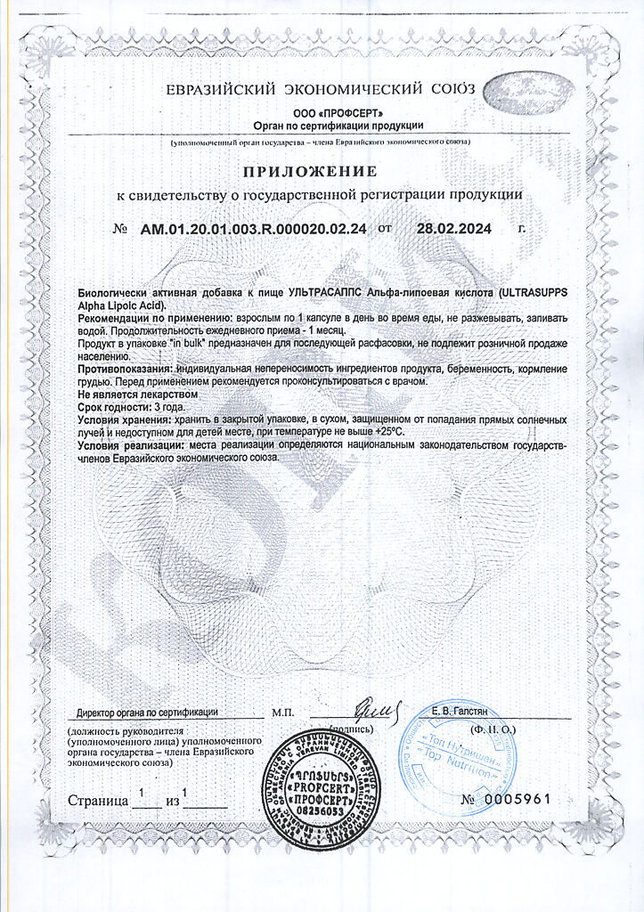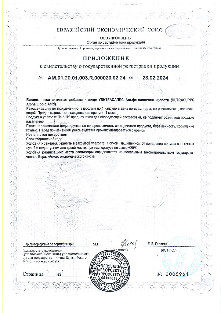 Документы Ультрасаппс Альфа-липоевая кислота / Ultrasupps Alpha Lipoic Acid капсулы массой 750 мг 30 шт