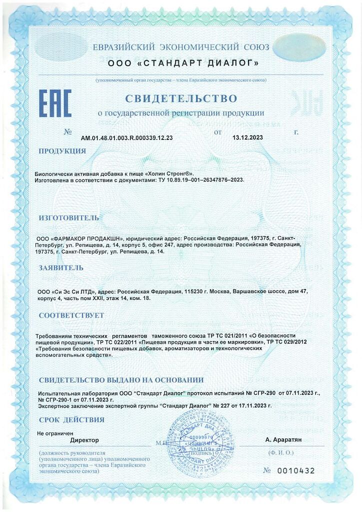Документы Холин Стронг капсулы по 0,588 г 60 шт
