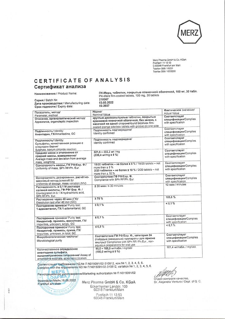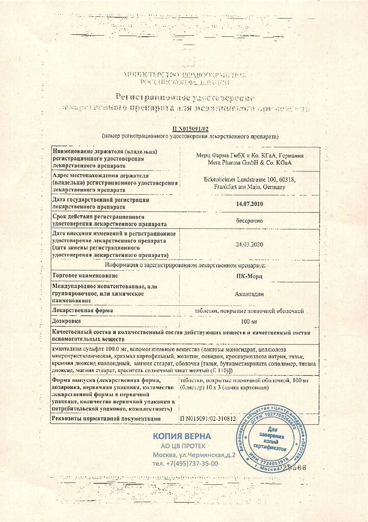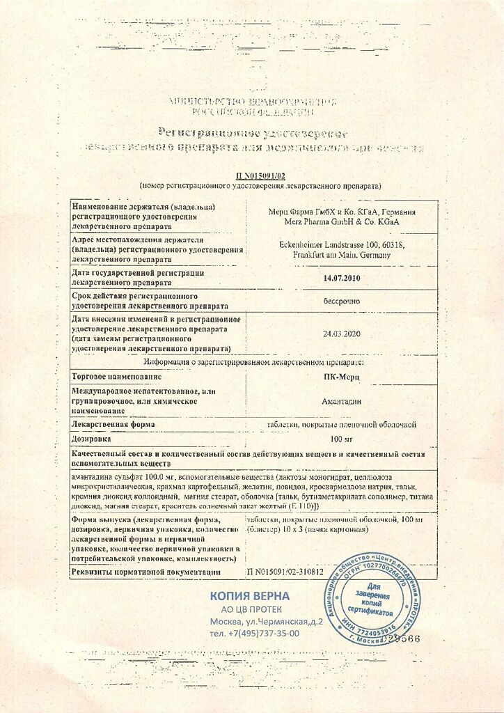 Действующее вещество: Амантадин