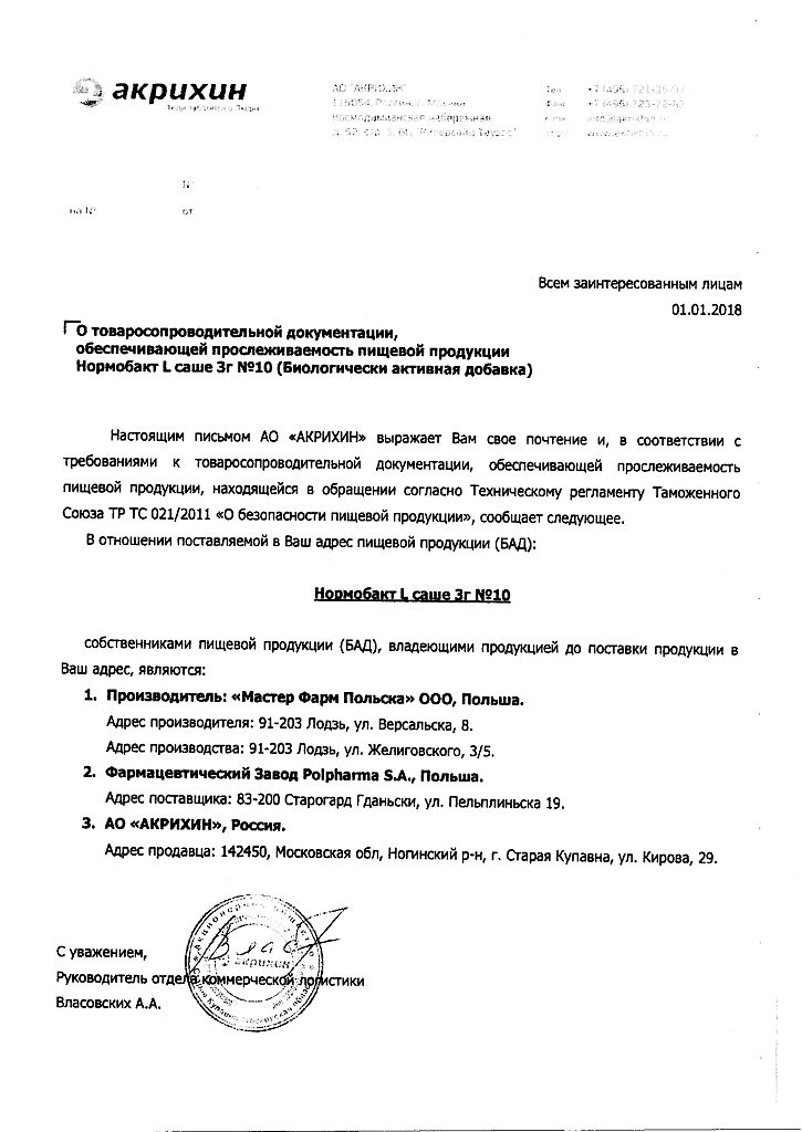 Документы Нормобакт L