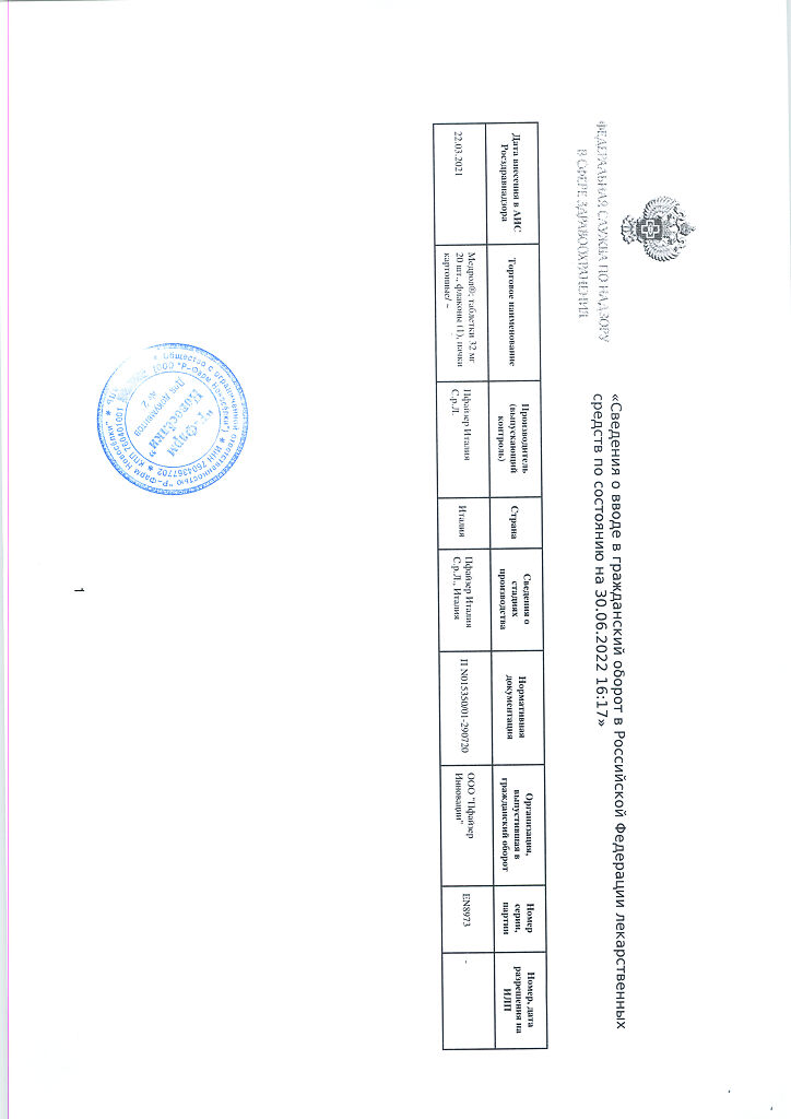 Производитель: Пфайзер Италия С.р.Л., Италия