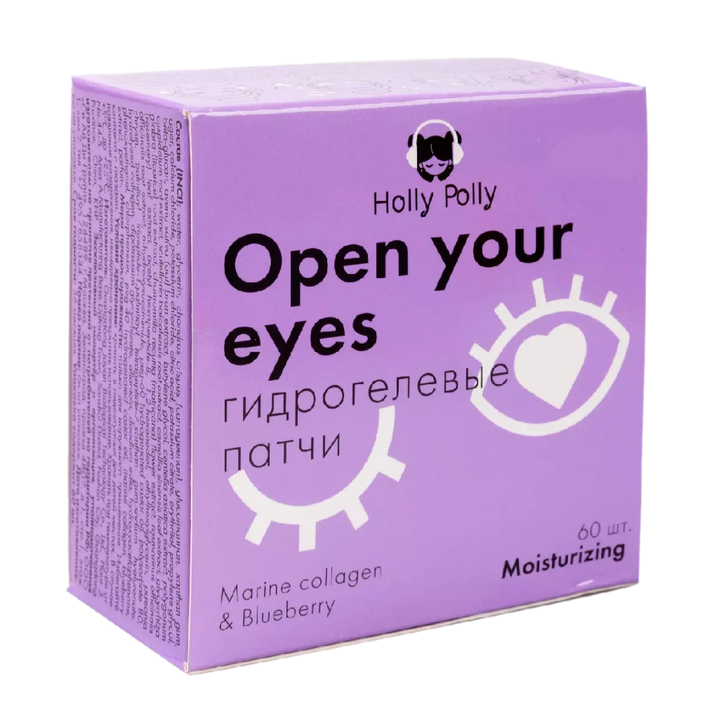 Holly Polly Гидрогелевые патчи для глаз Open your eyes с морским коллагеном и экстрактом черники 60 шт