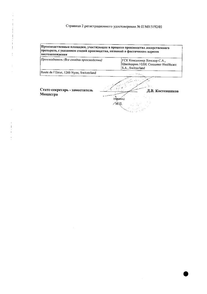 Производитель: ГСК Консьюмер Хелскер С.А., Швейцария