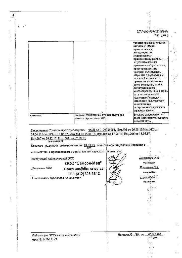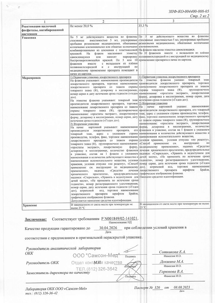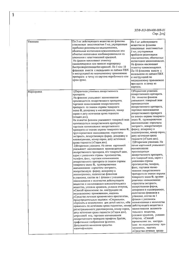 экстракт ткани простаты бычков, достигших половой зрелости 5 мг