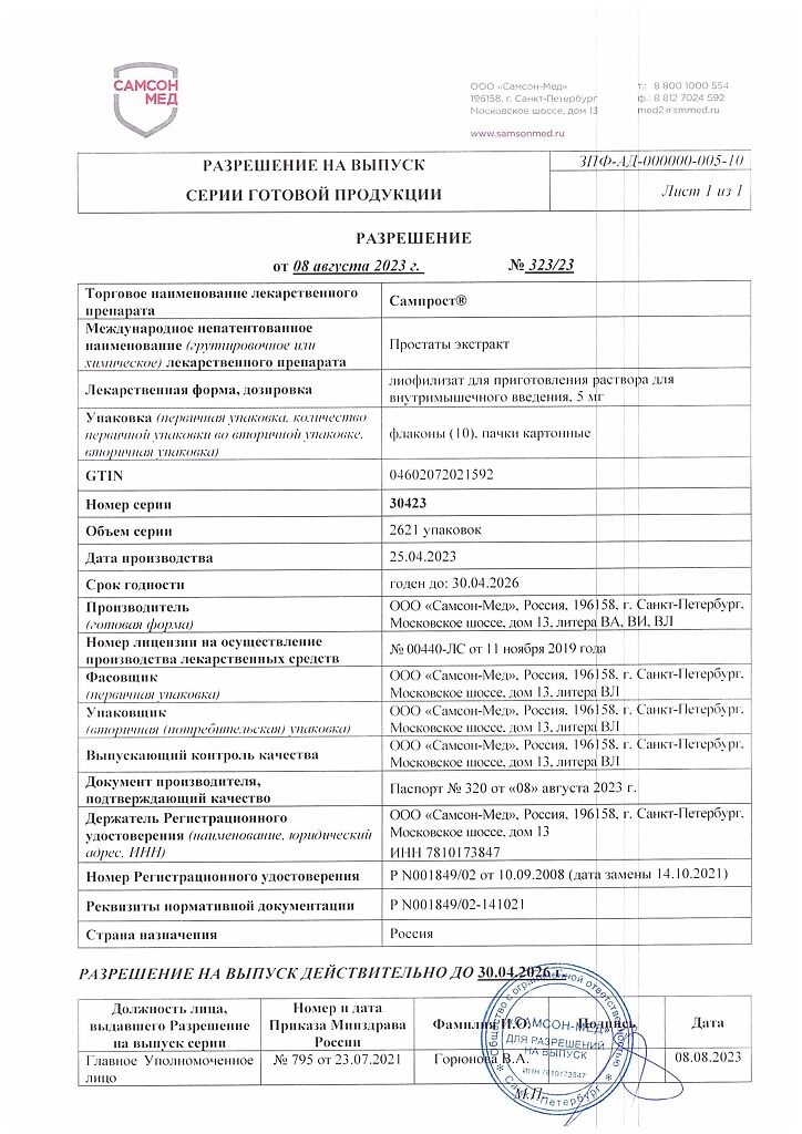 Производитель: Самсон-Мед ООО, Россия