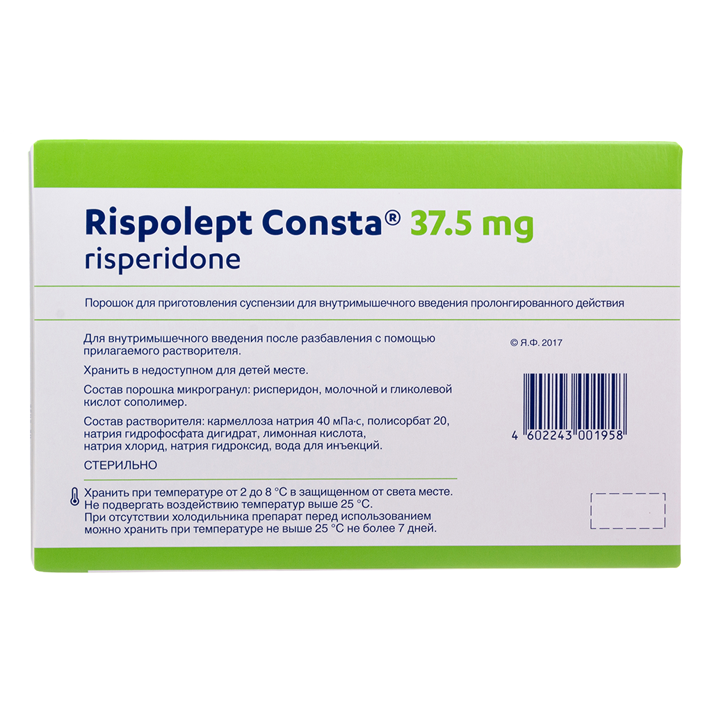 Рисполепт Конста® нельзя смешивать или разводить никакими другими лекарствами и жидкостями помимо специального растворителя, содержащегося в упаковке.