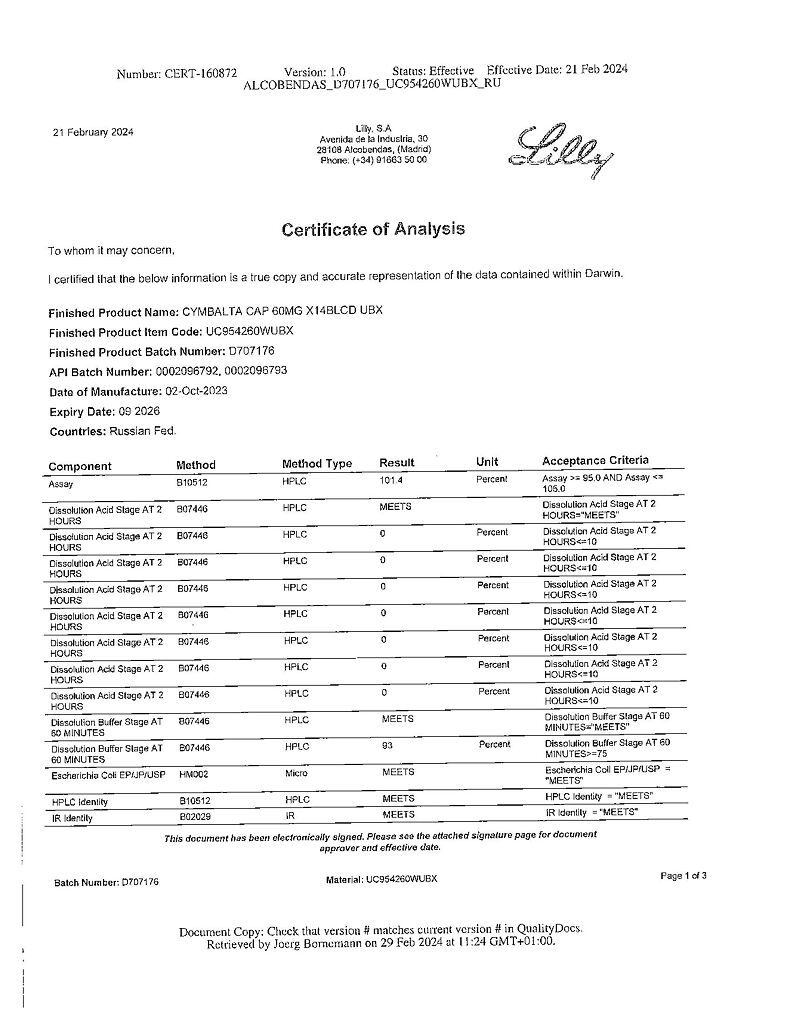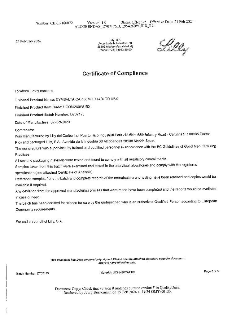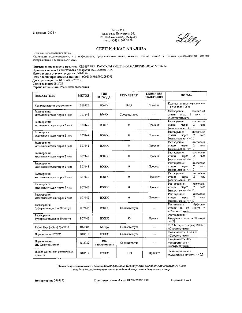 Документы Симбалта капсулы кишечнорастворимые 60 мг 14 шт