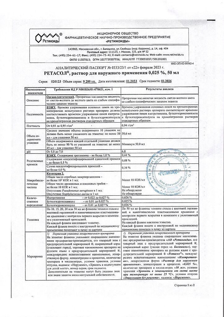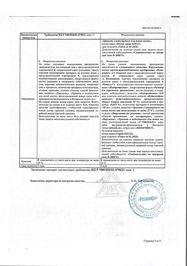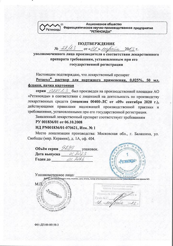 Производитель: Ретиноиды АО, Россия