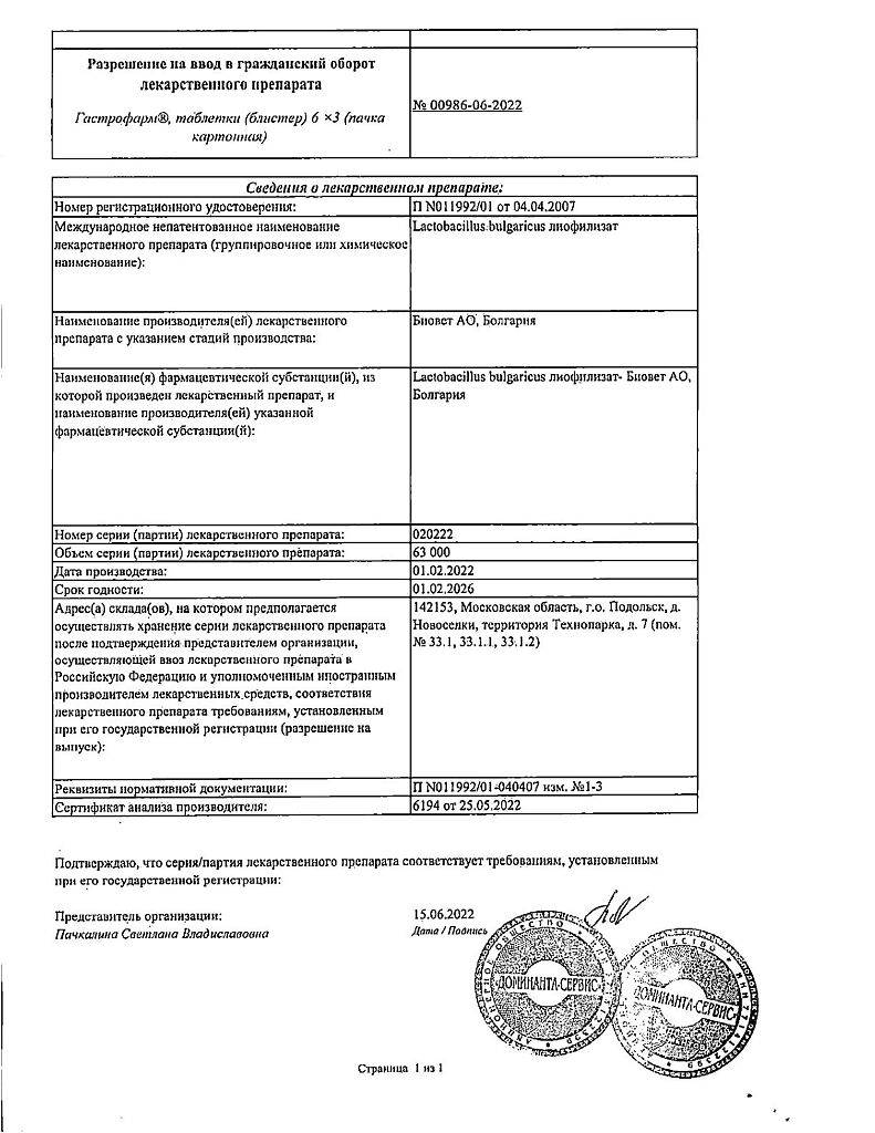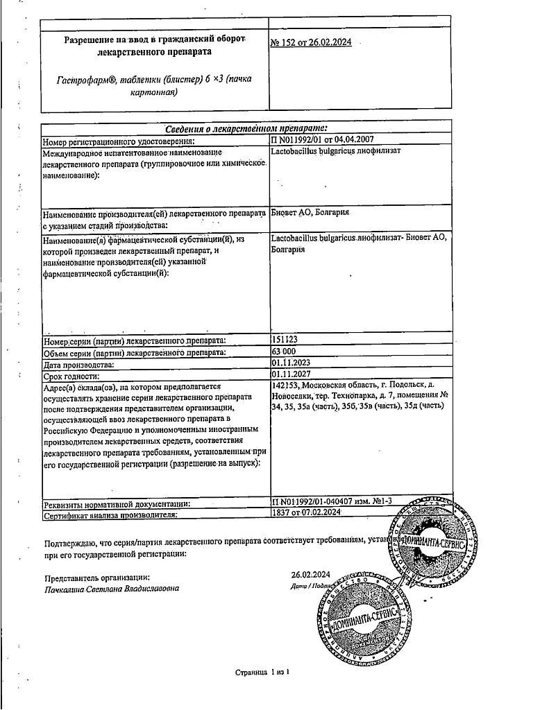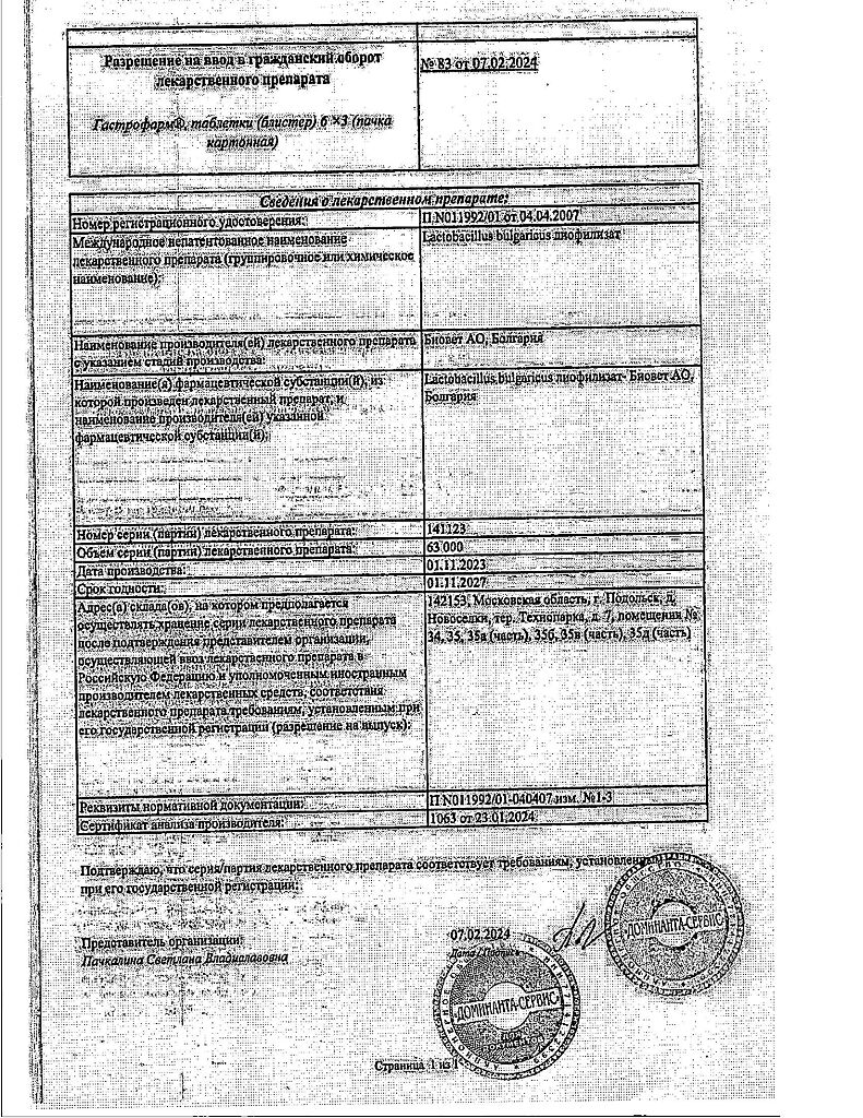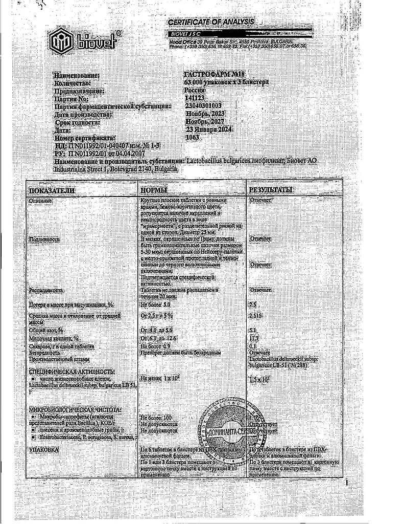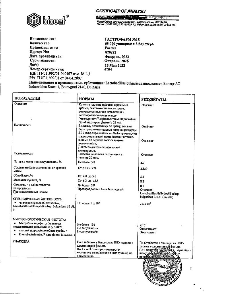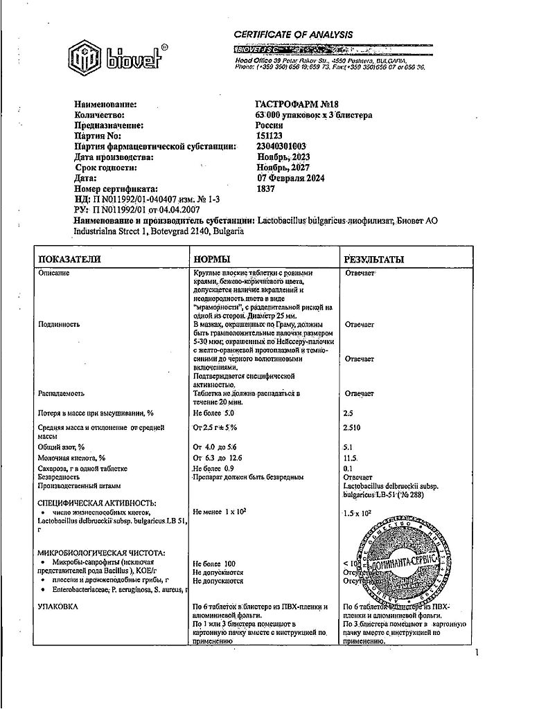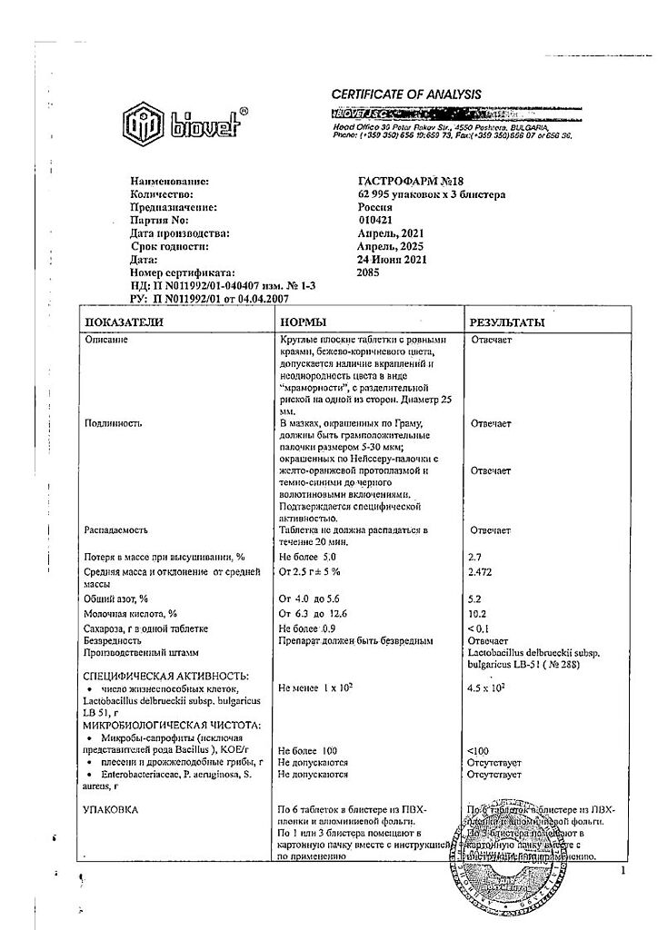 Действующее вещество: Субстанция из высушенных жизнеспособных клеток лактобацилюс