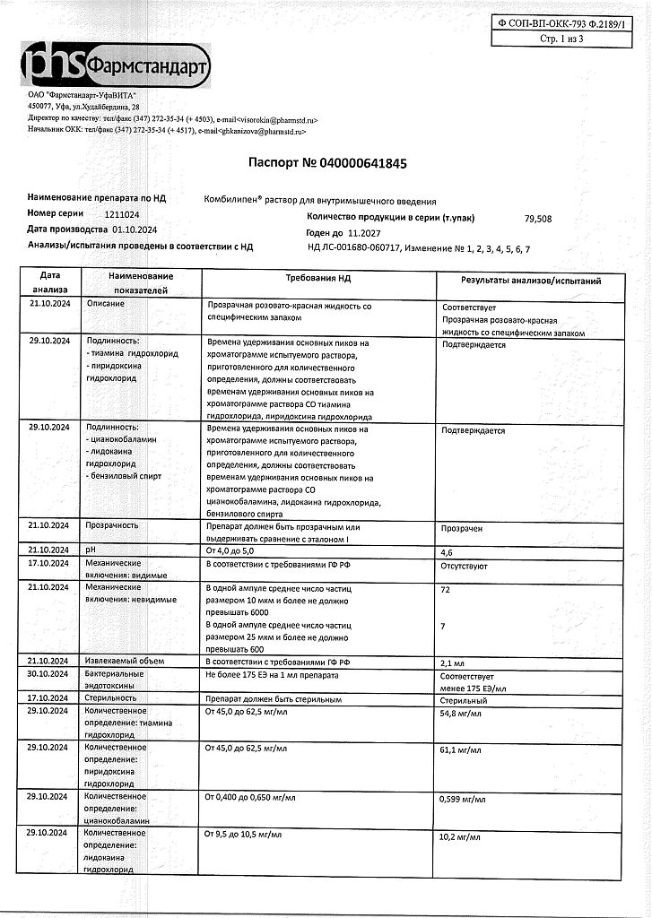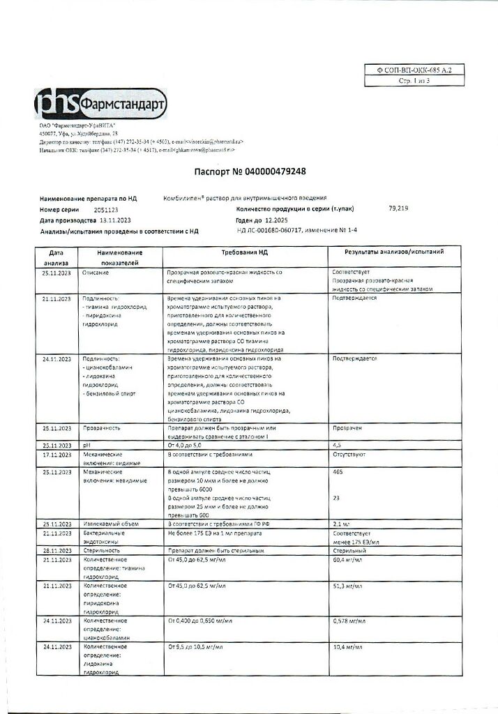 Документы Комбилипен раствор для в/м введ. 2 мл амп 5 шт