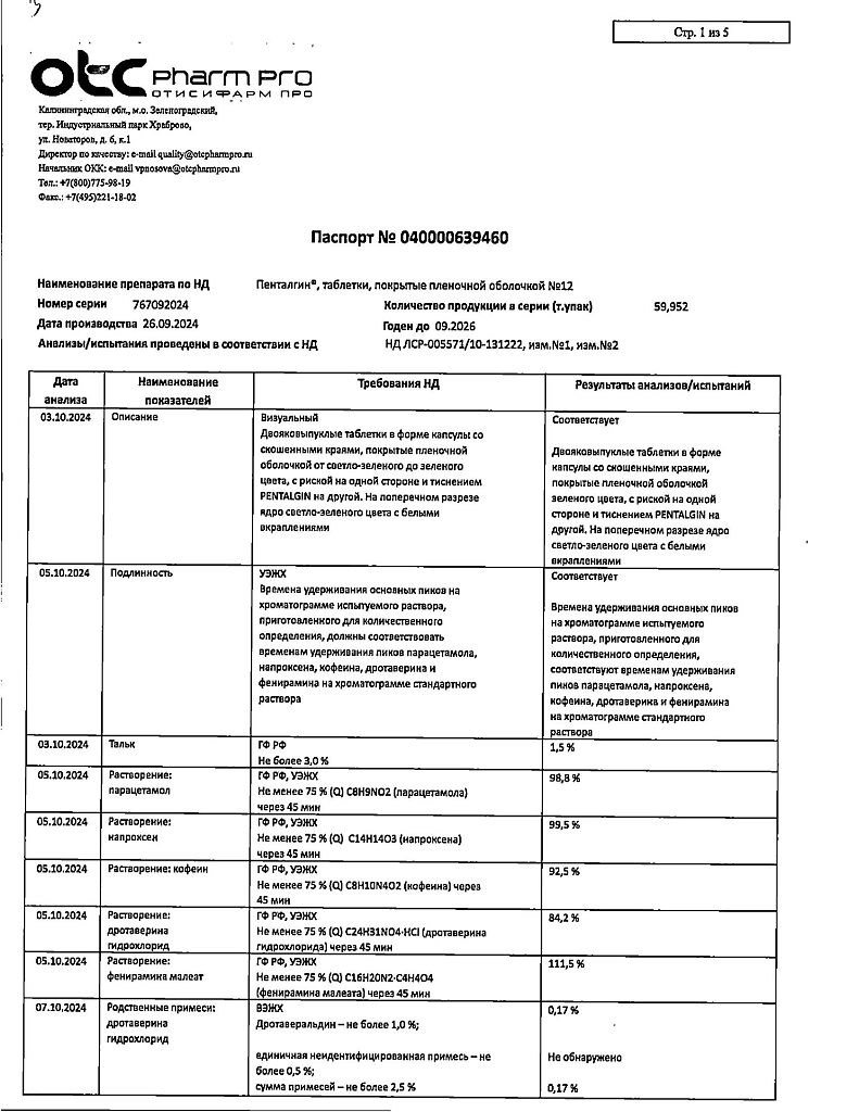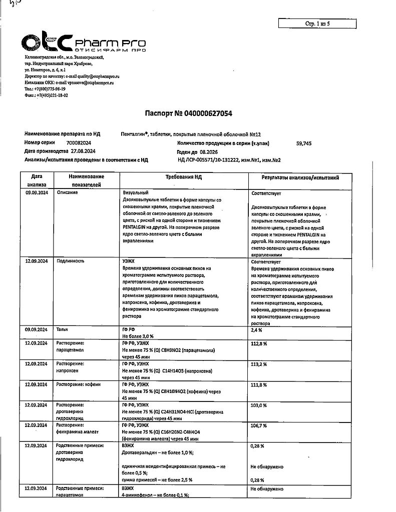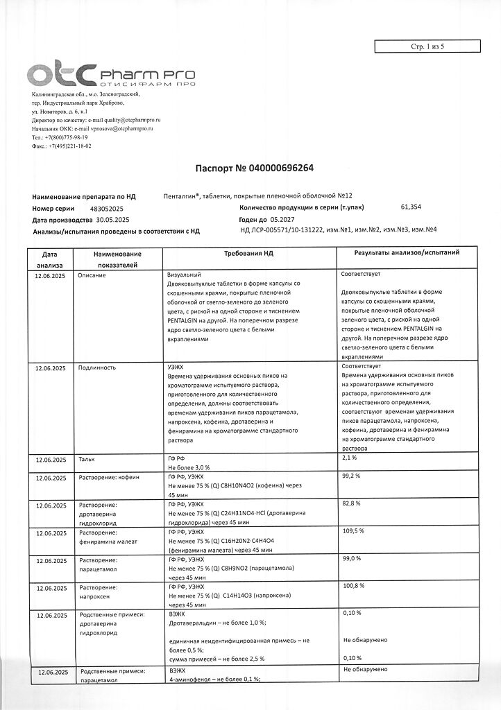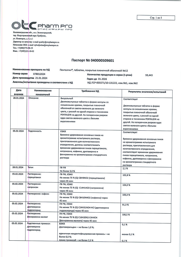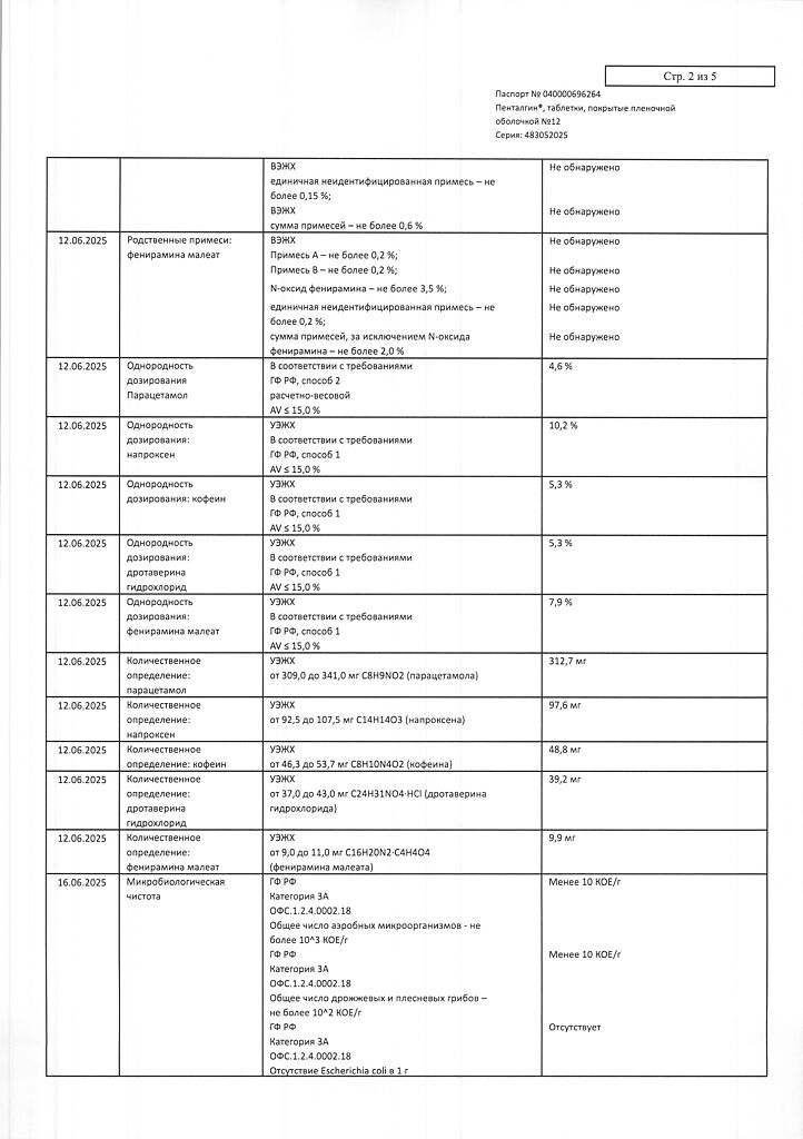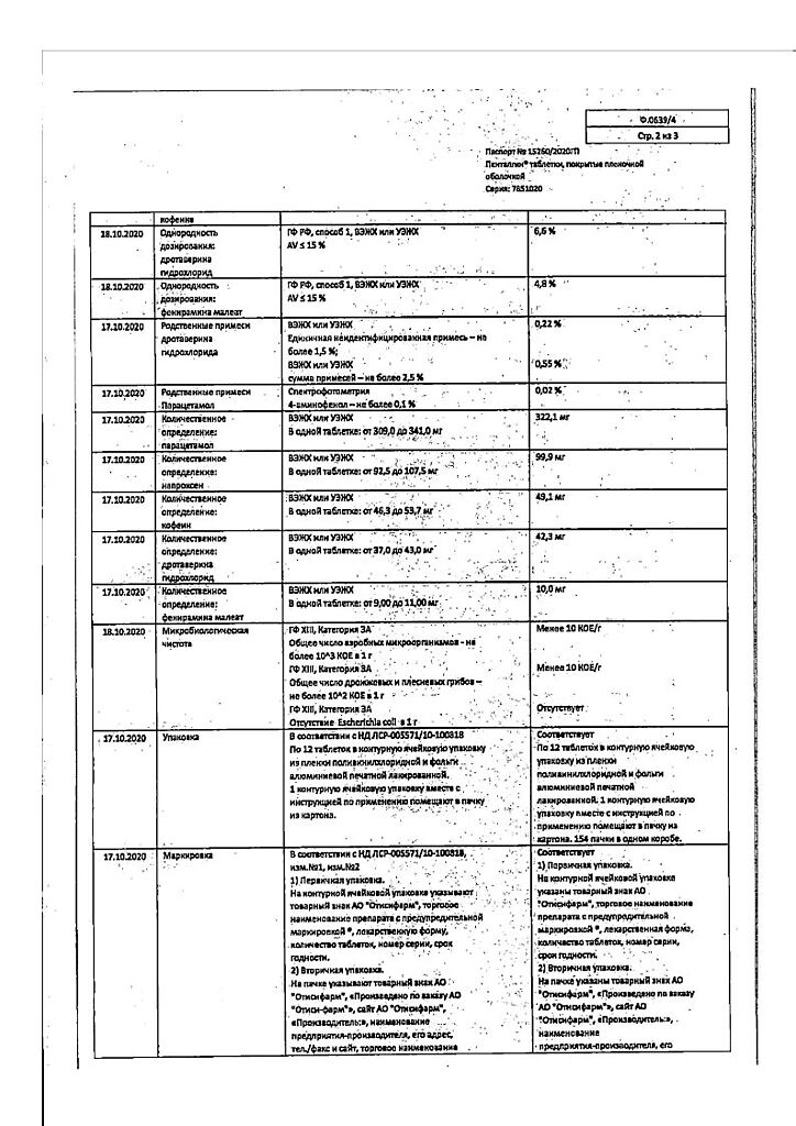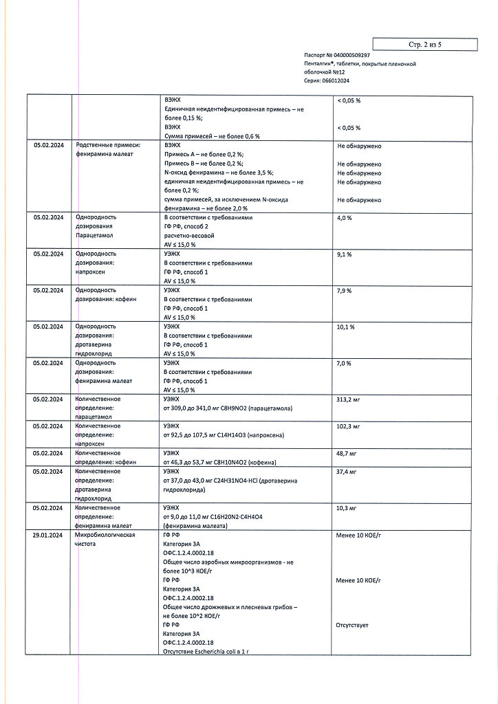 Действующее вещество: Парацетамол, Напроксен, Кофеин, Дротаверин, Фенирамин
