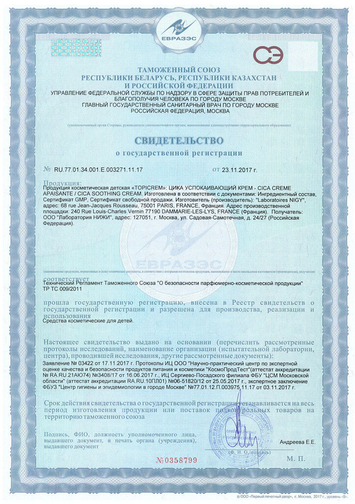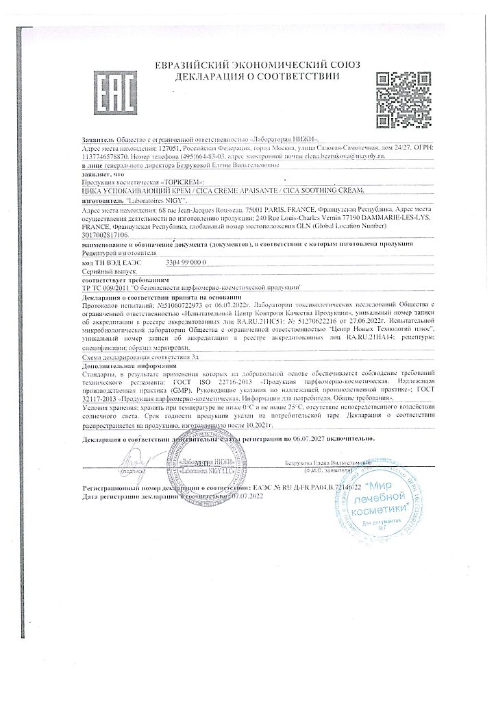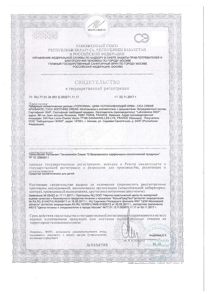 Документы Топикрем Cica крем Цика успокаивающий восстанавливающий 40 мл 1 шт