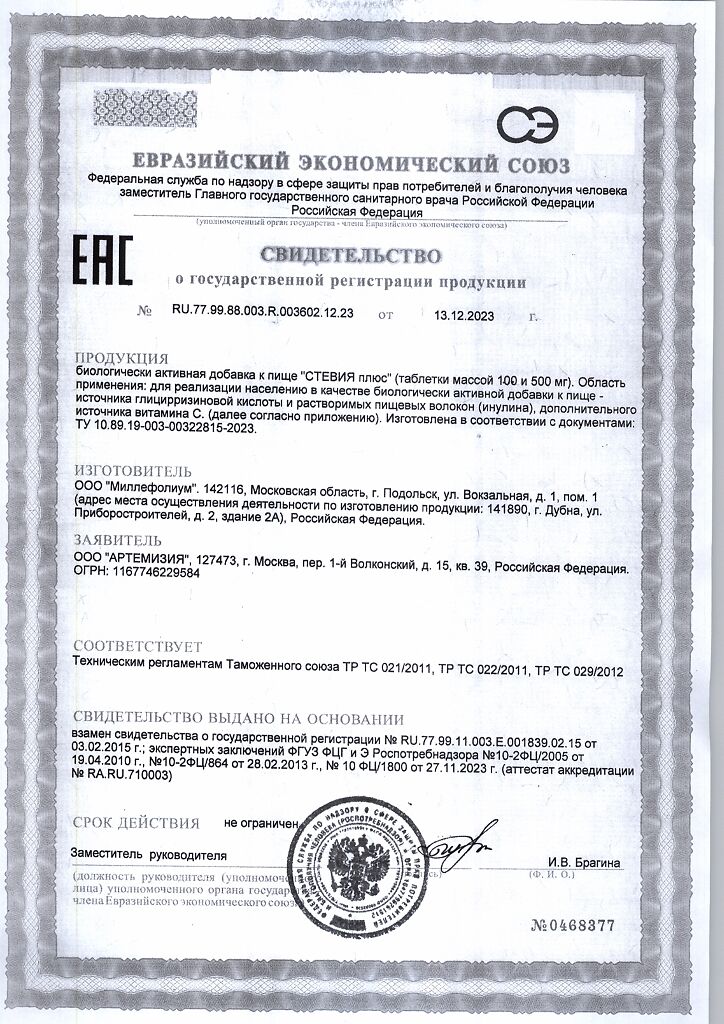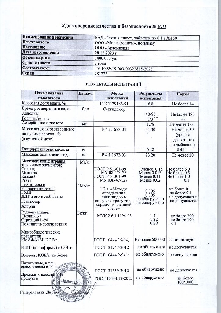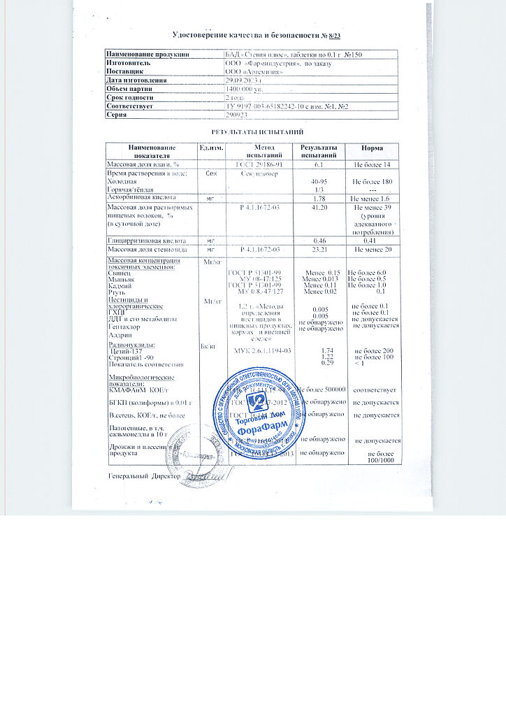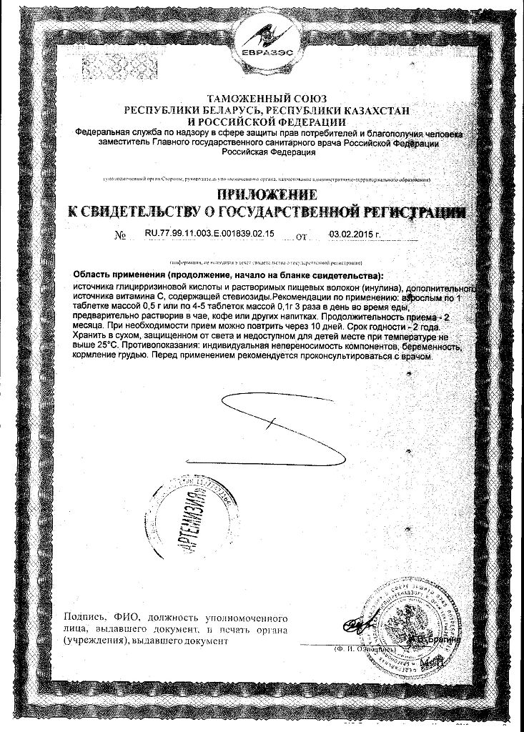 Документы Стевия Плюс таблетки массой 100 мг 150 шт