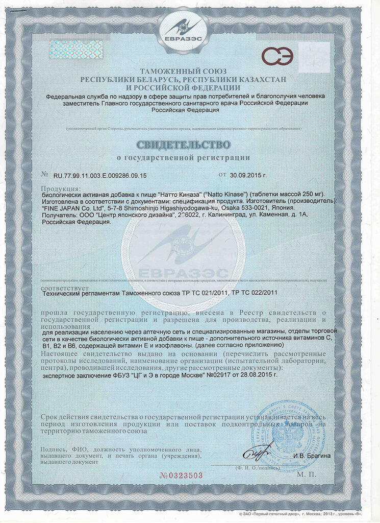 Документы Fine Натто Киназа таблетки массой 240 шт