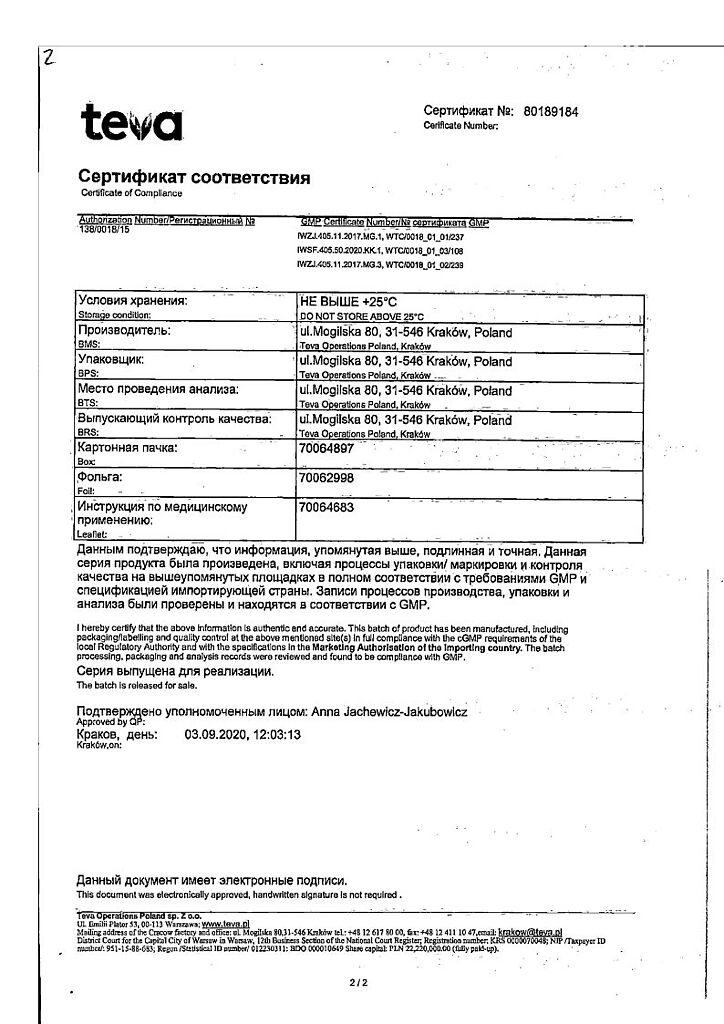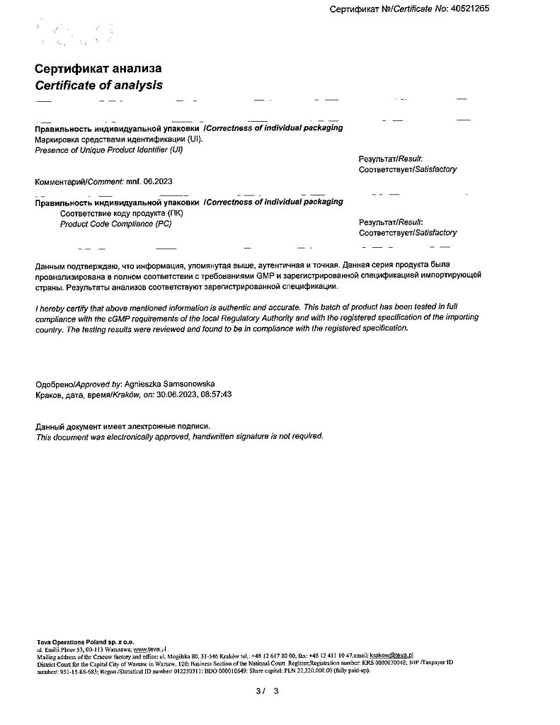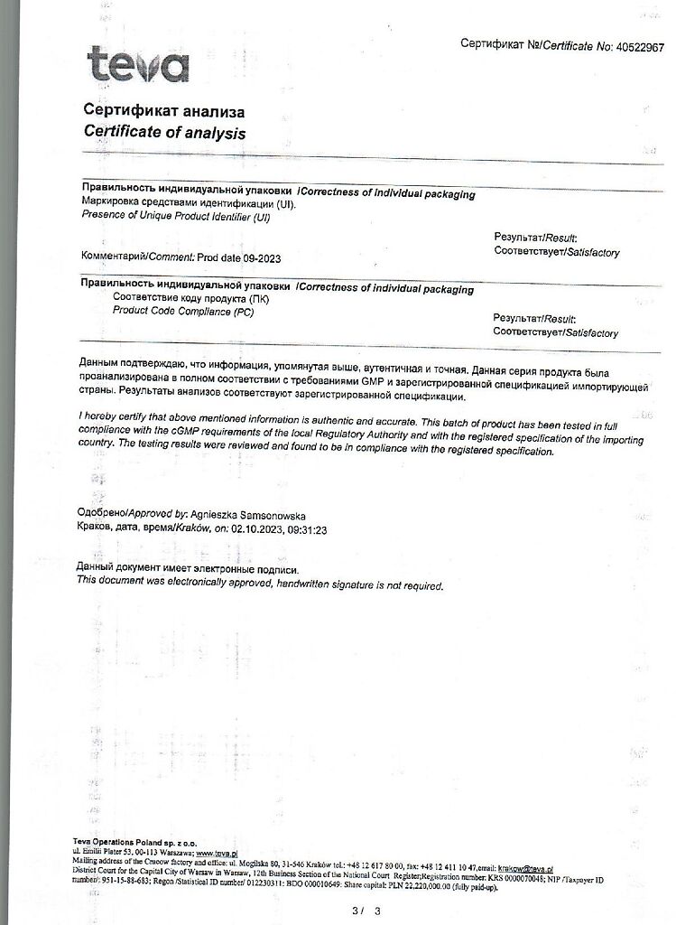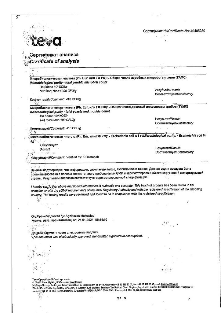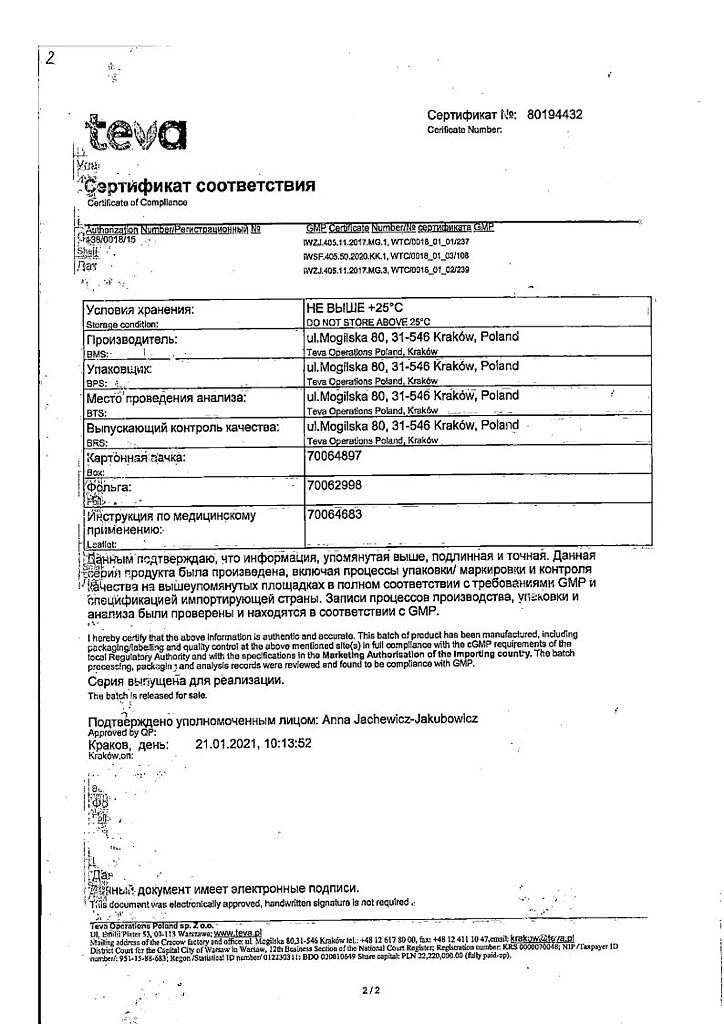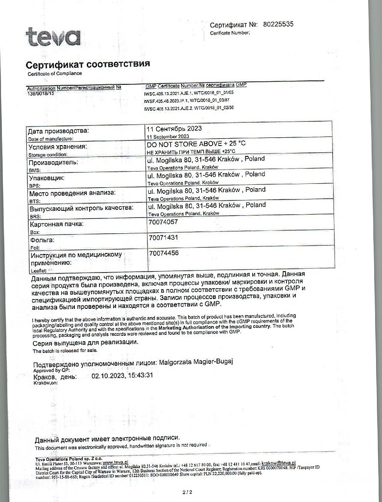 Производитель: Тева Оперейшнс Поланд Сп. з о.о., Польша