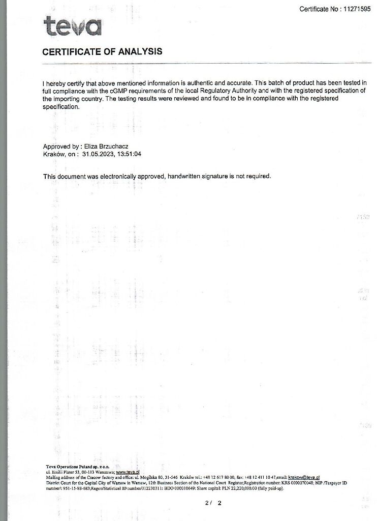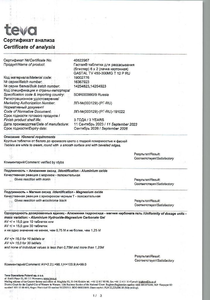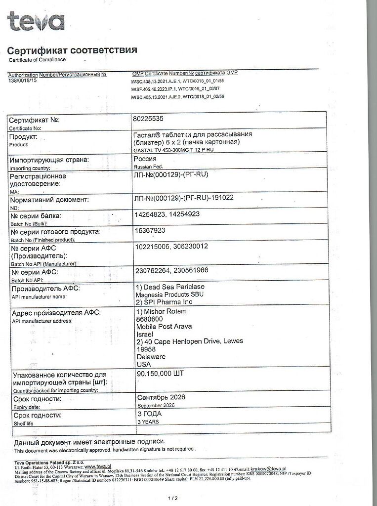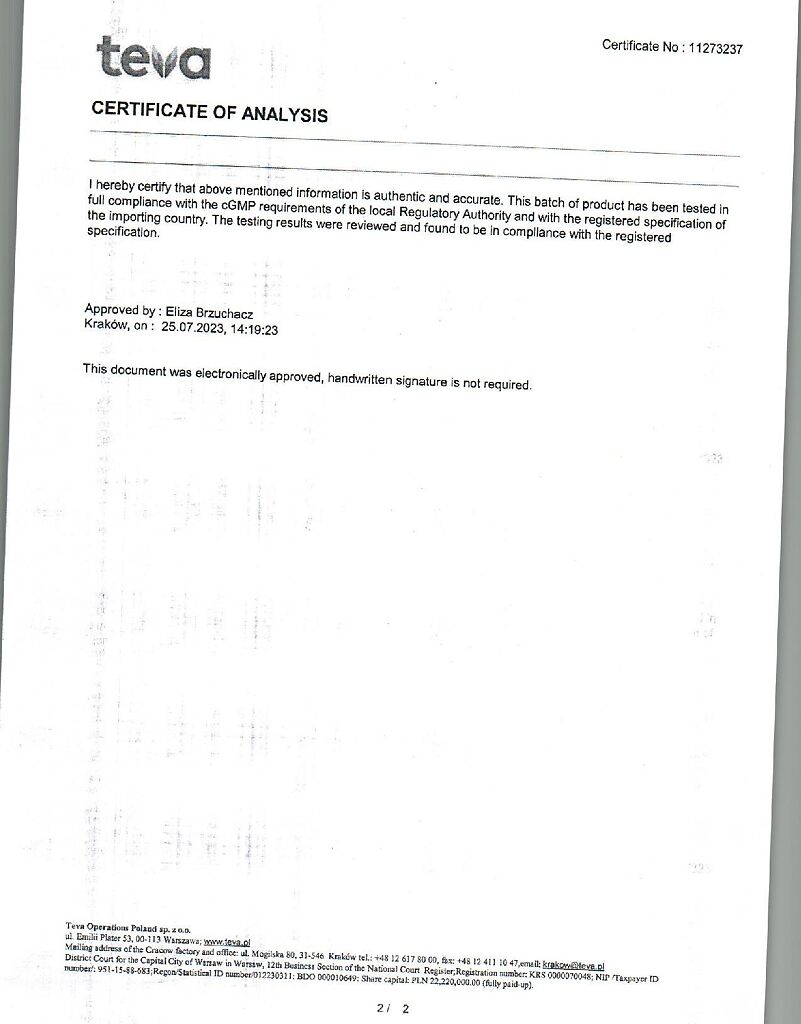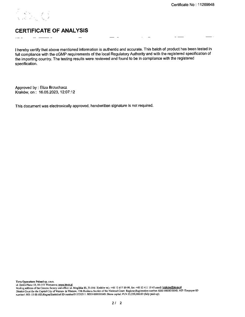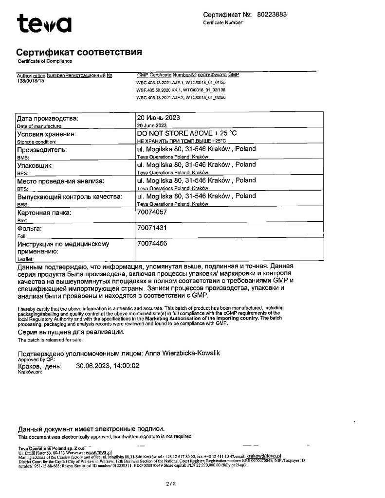 Производитель: Тева Оперейшнс Поланд Сп. з о.о., Польша