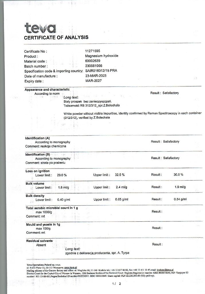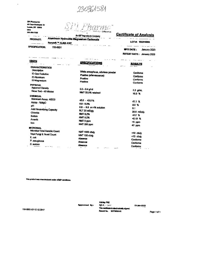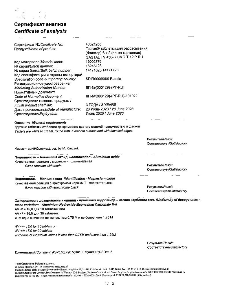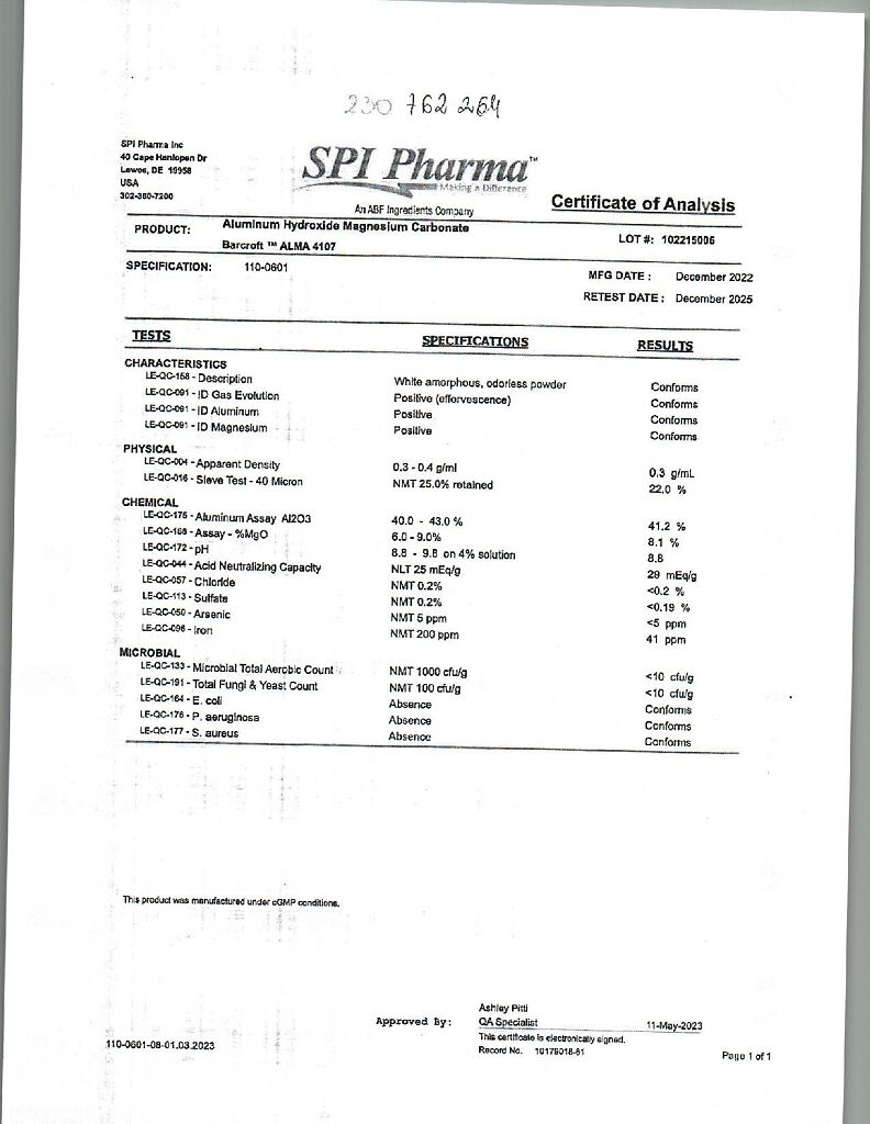 Действующее вещество: Алюминия гидроксид-магния карбонат, магния гидроксид