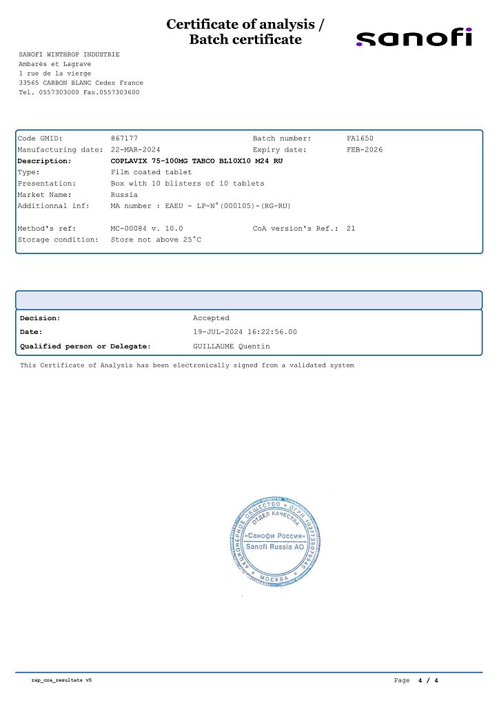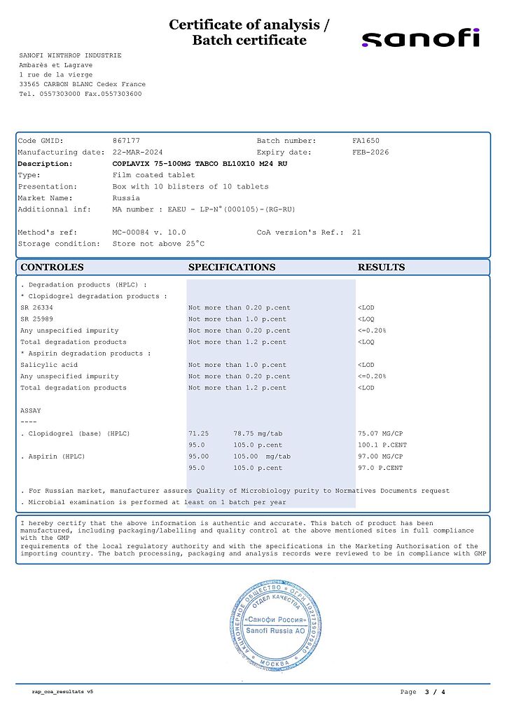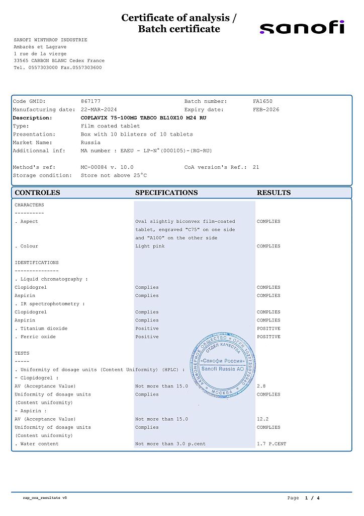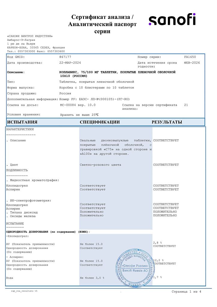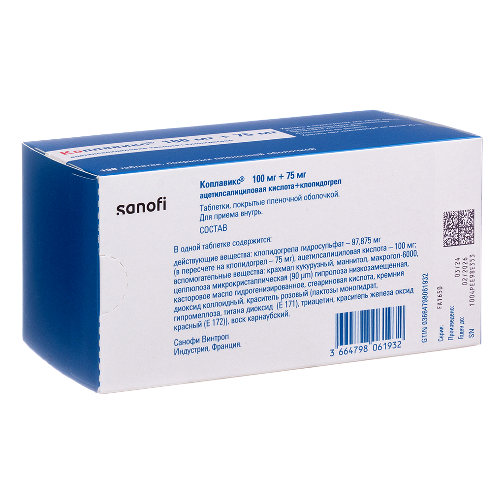 Действующее вещество: Ацетилсалициловая кислота, Клопидогрел