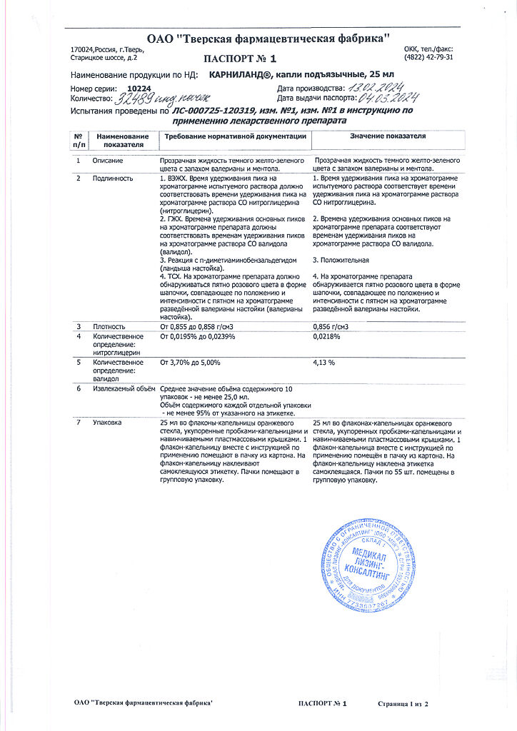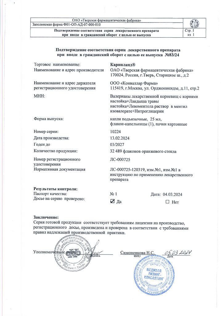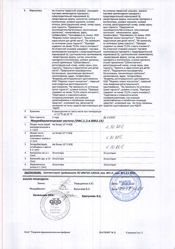 Действующее вещество: Валерианы лек. корневищ с корн настойка, Ландыша тр настойка, Нитроглицерин, Левоментол
