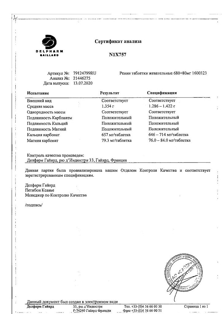 Действующее вещество: Кальция карбонат, Магния карбонат