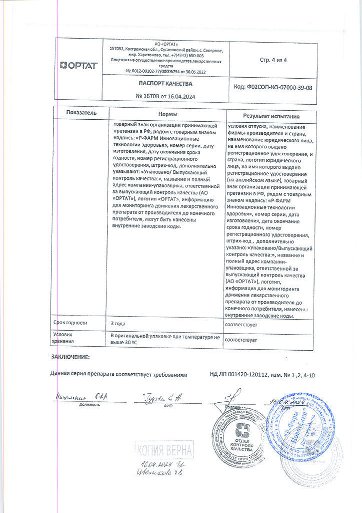 - Натрия триполифосфат 4 мг;