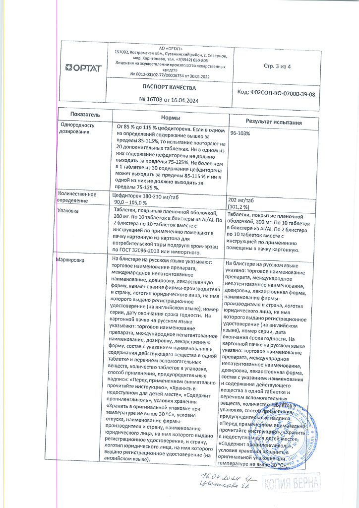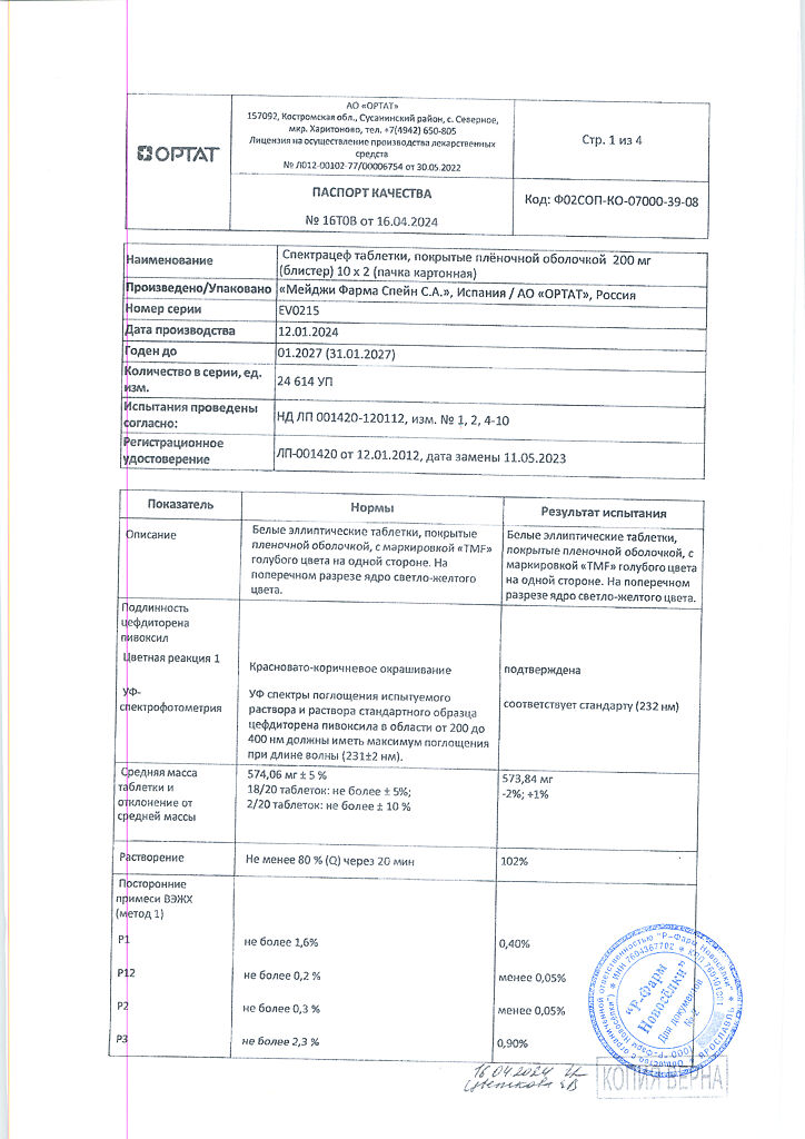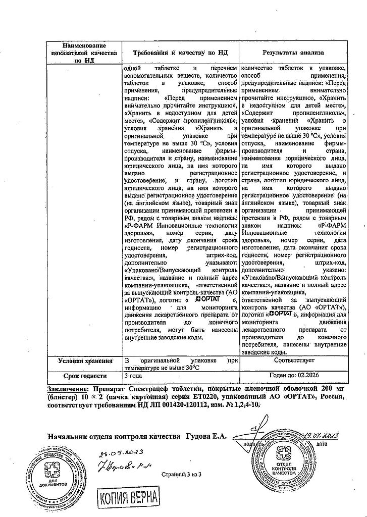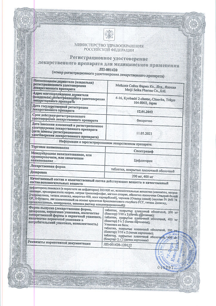 Документы Спектрацеф таблетки покрыт.плен.об. 200 мг 20 шт