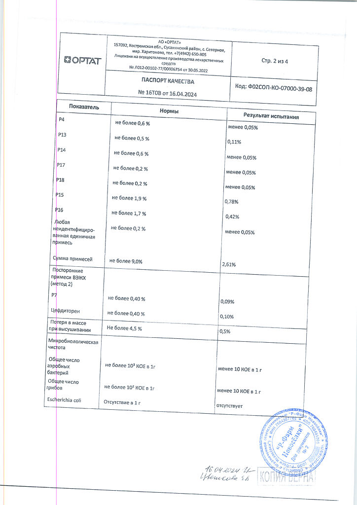 Действующее вещество: Цефдиторен