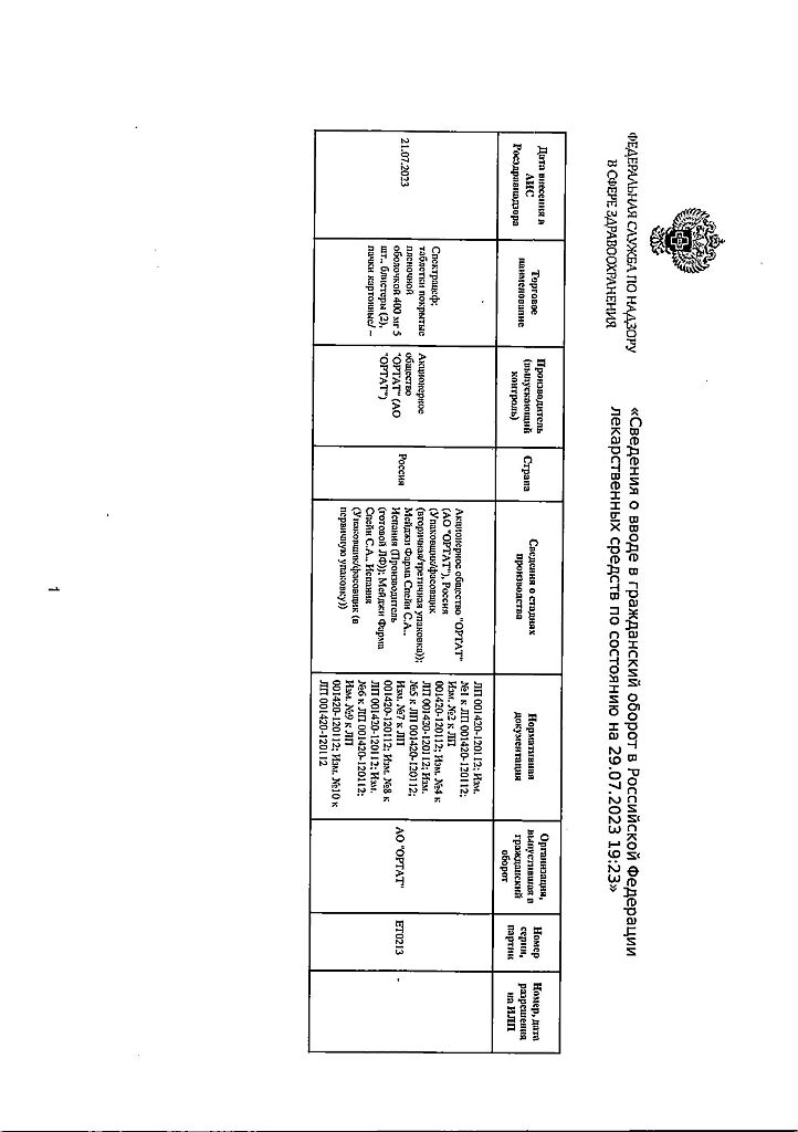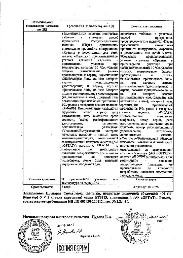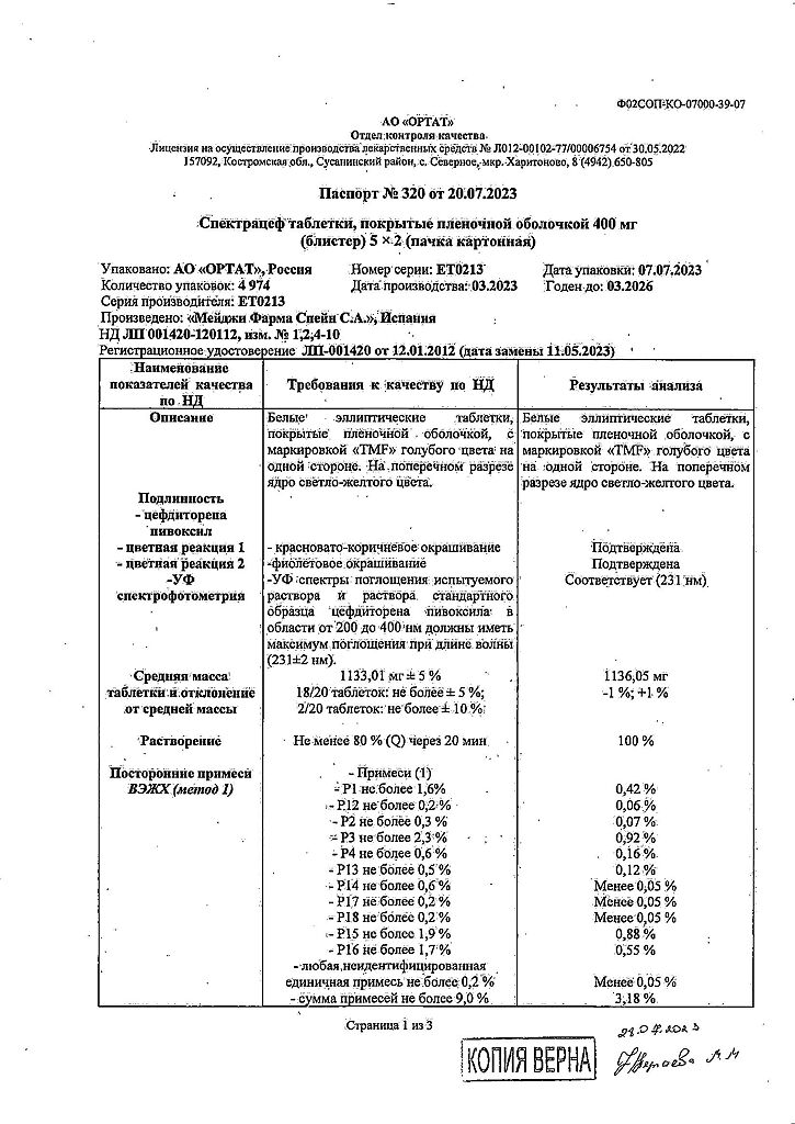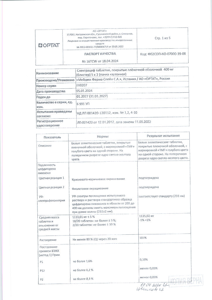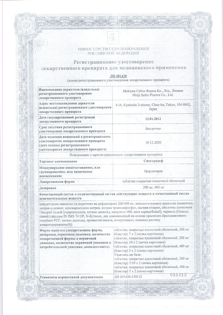 Документы Спектрацеф таблетки покрыт.плен.об. 400 мг 10 шт