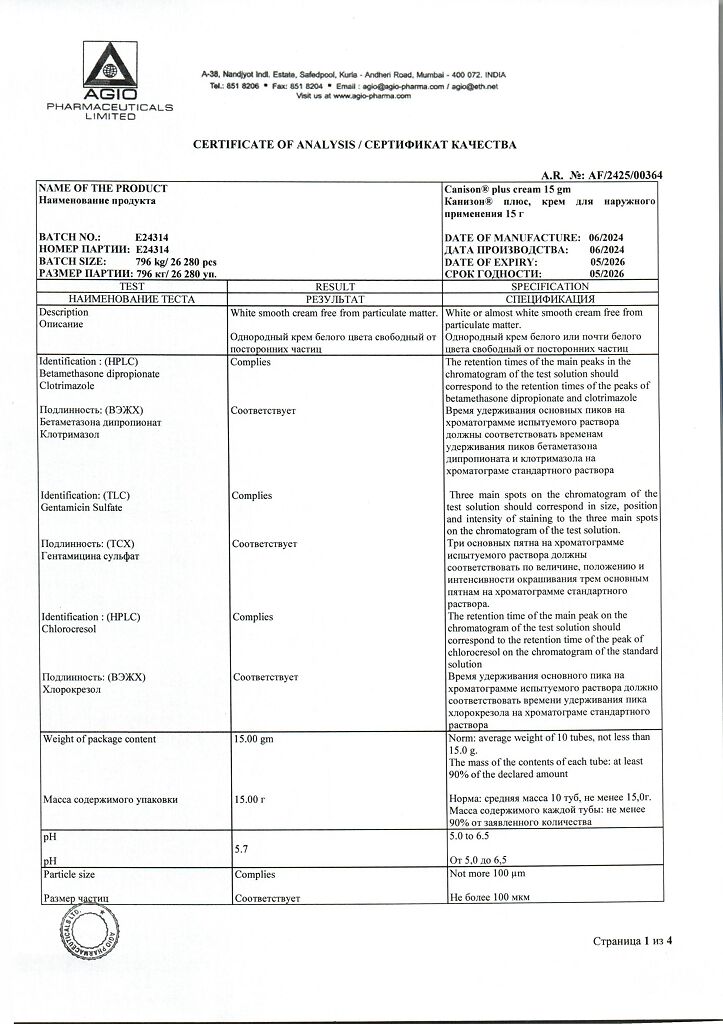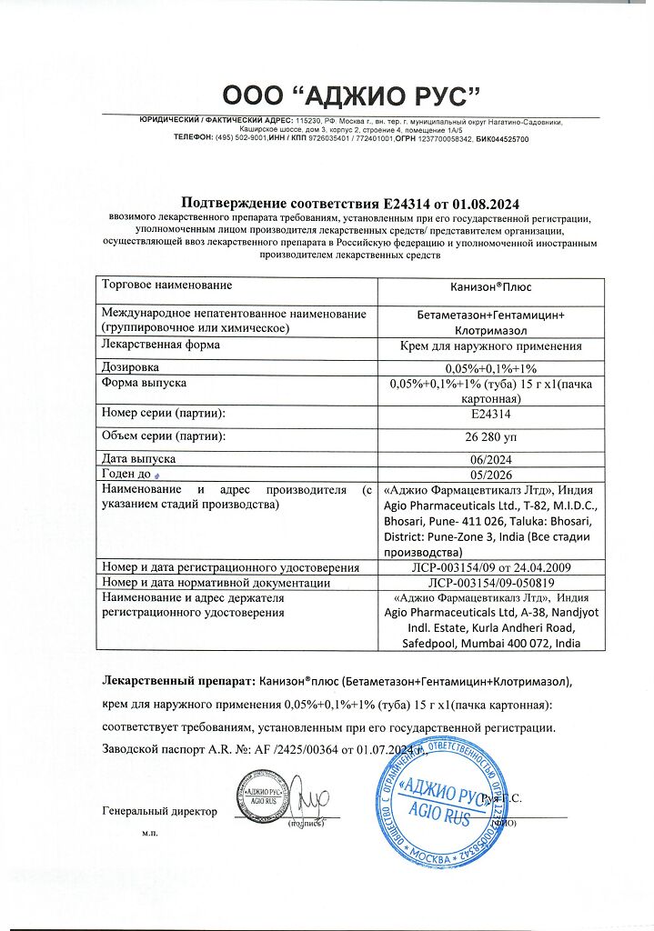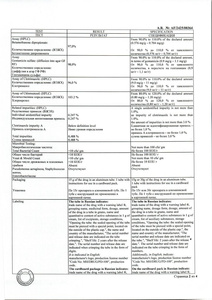 Действующее вещество: Бетаметазон, Гентамицин, Клотримазол