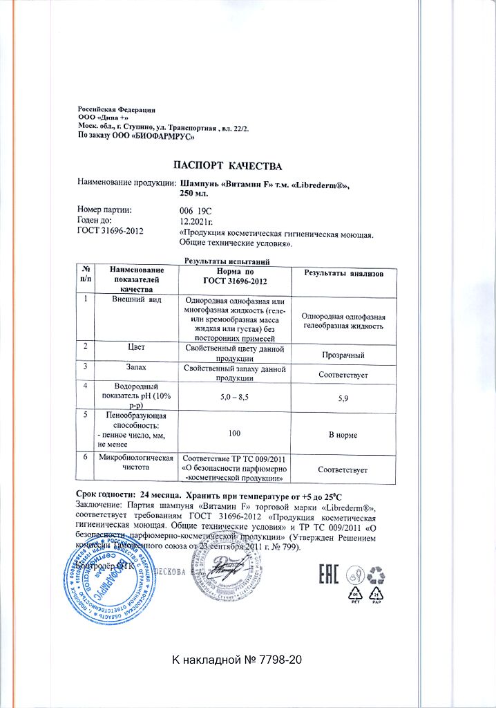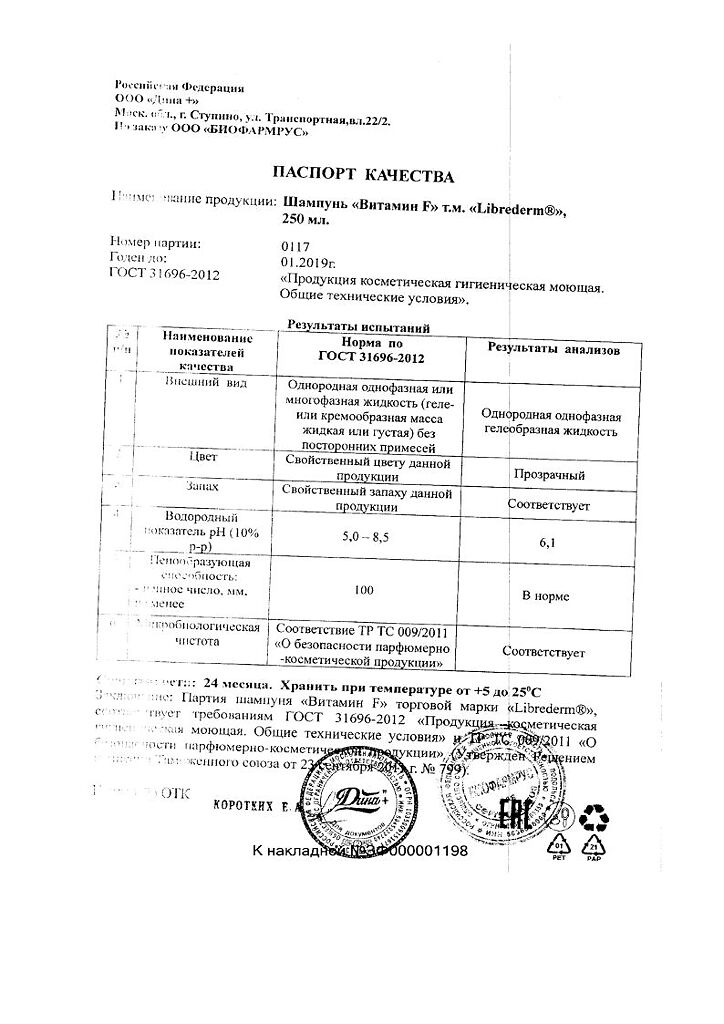Шампунь «Витамин F» предназначен для мягкого очищения, восстановления волоспо всей длине и питания кожи головы. Особенно рекомендуется для ухода за волосами жирными у корней и сухими на кончиках, за окрашенными, ломкими, тусклыми и «уставшими» волосами, подвергавшимися термическому или химическому воздействию.