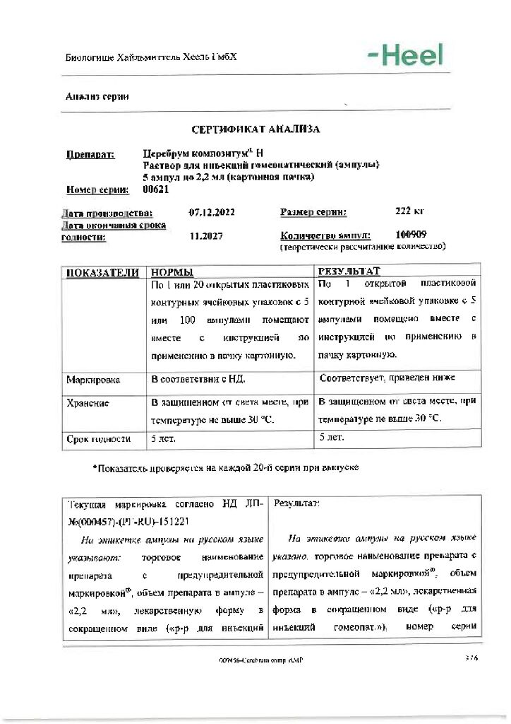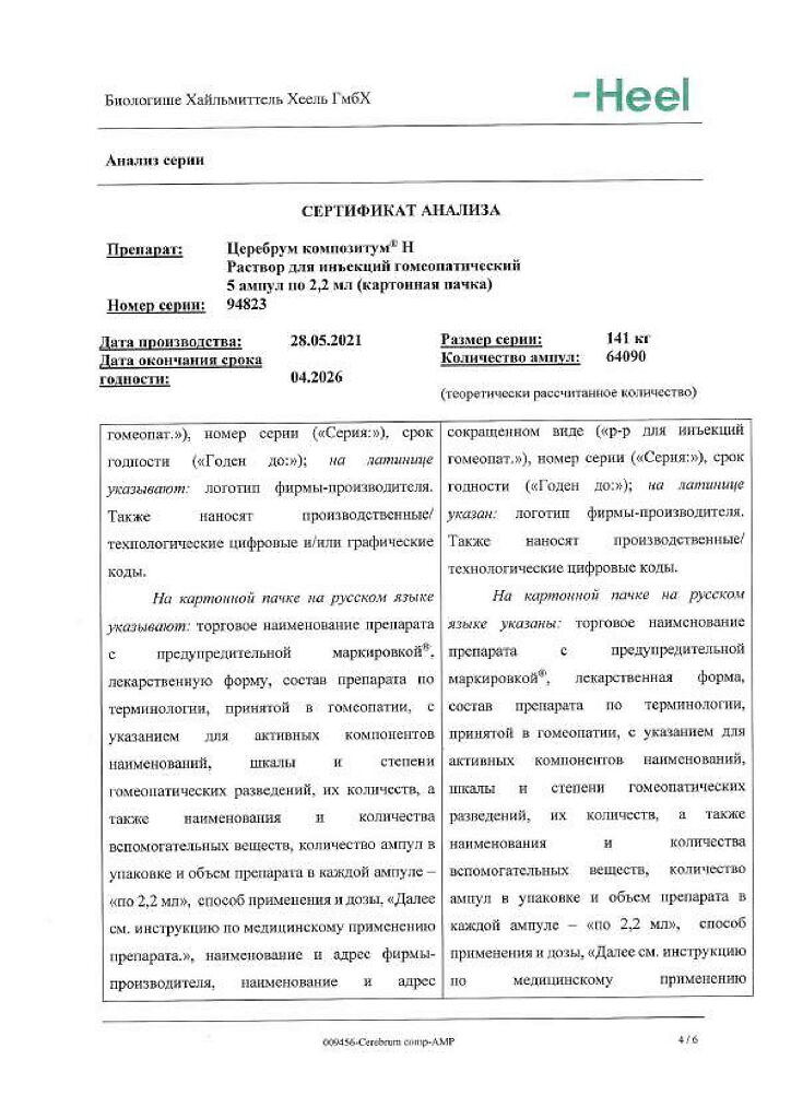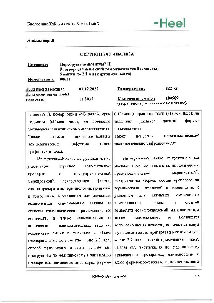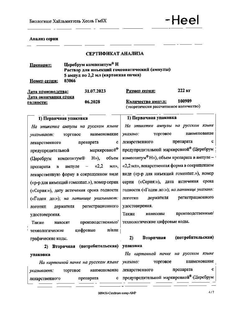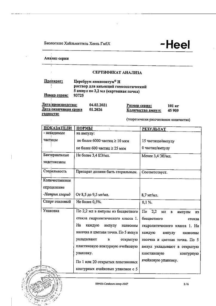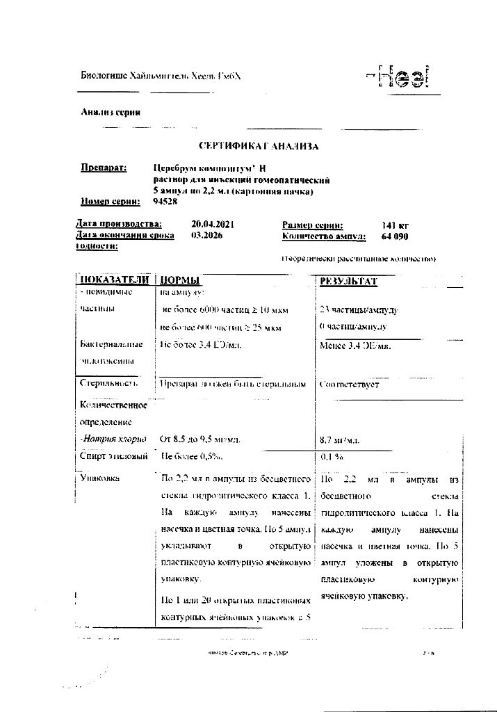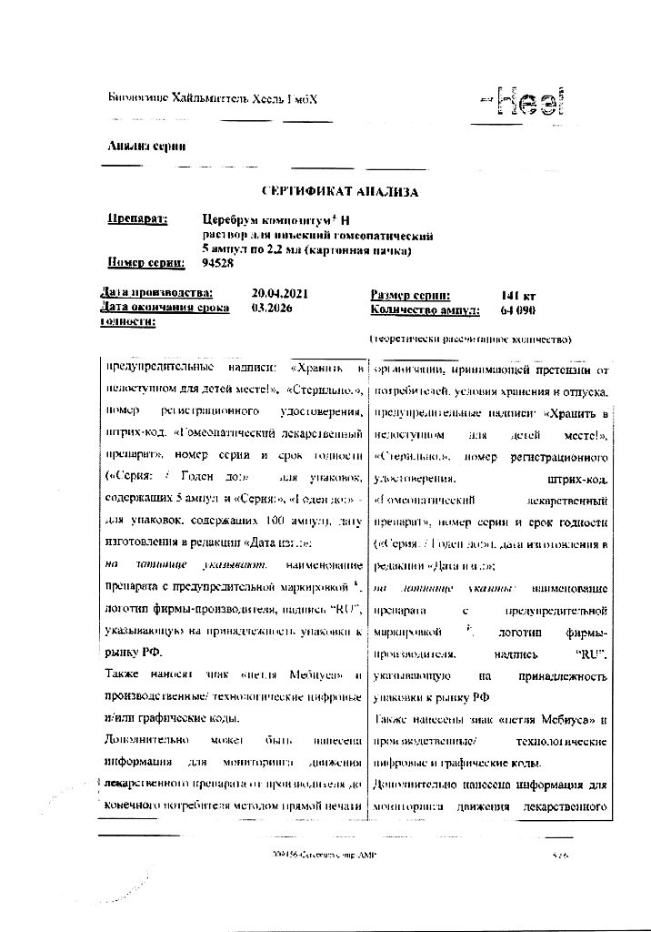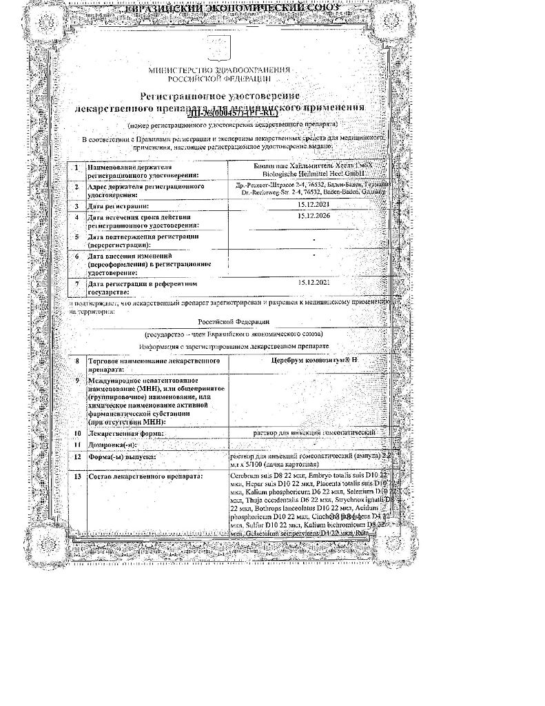Документы Церебрум композитум Н раствор для в/м и п/к введ. 2,2 мл амп инд.уп. 5 шт