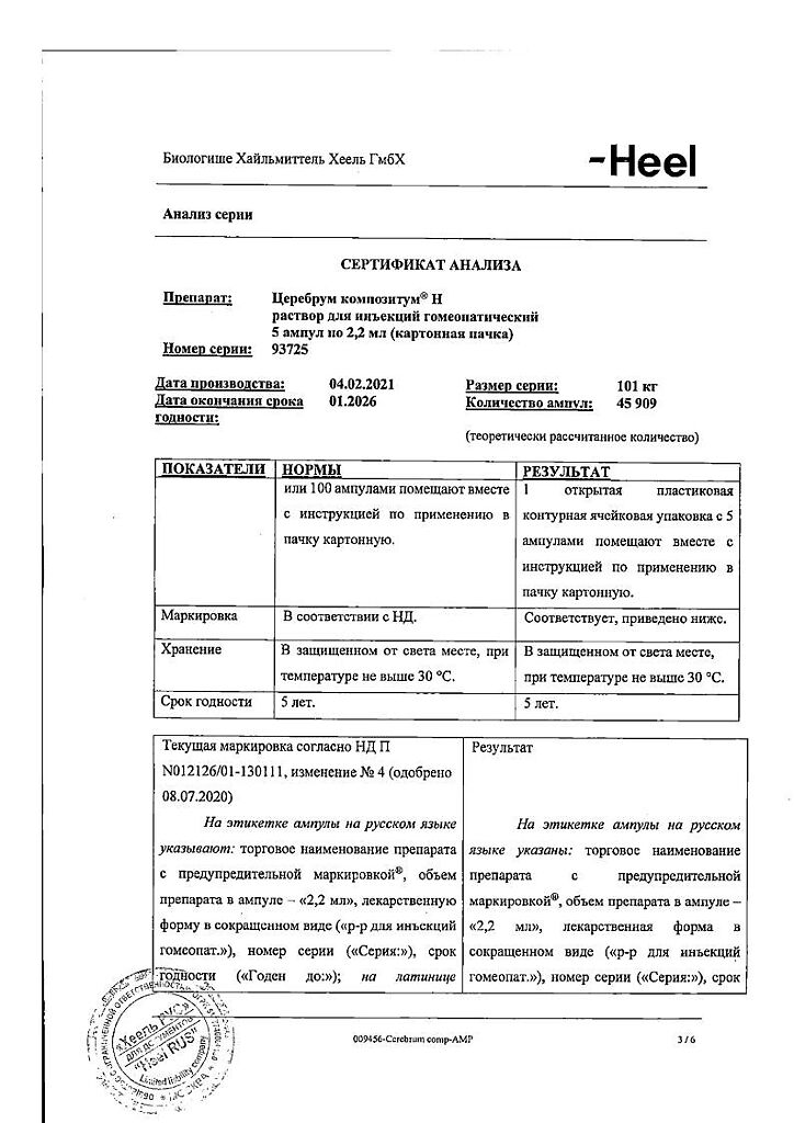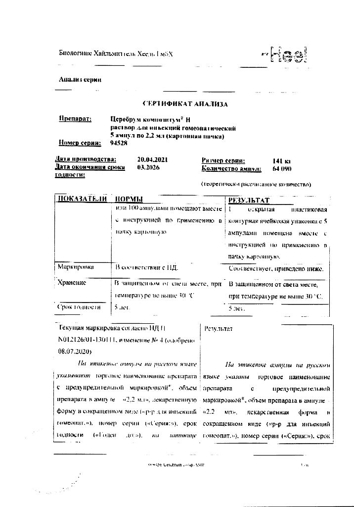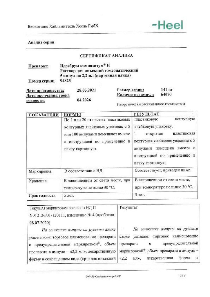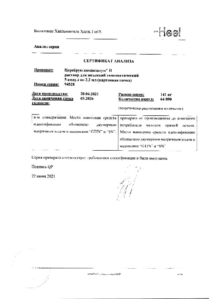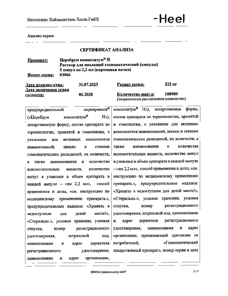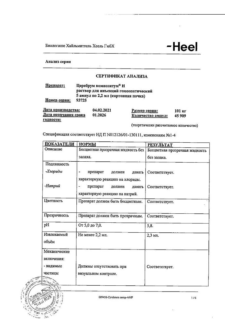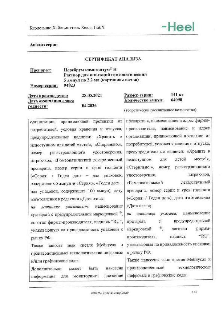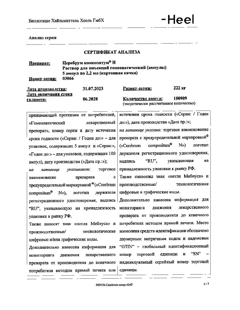 Документы Церебрум композитум Н раствор для в/м и п/к введ. 2,2 мл амп инд.уп. 5 шт