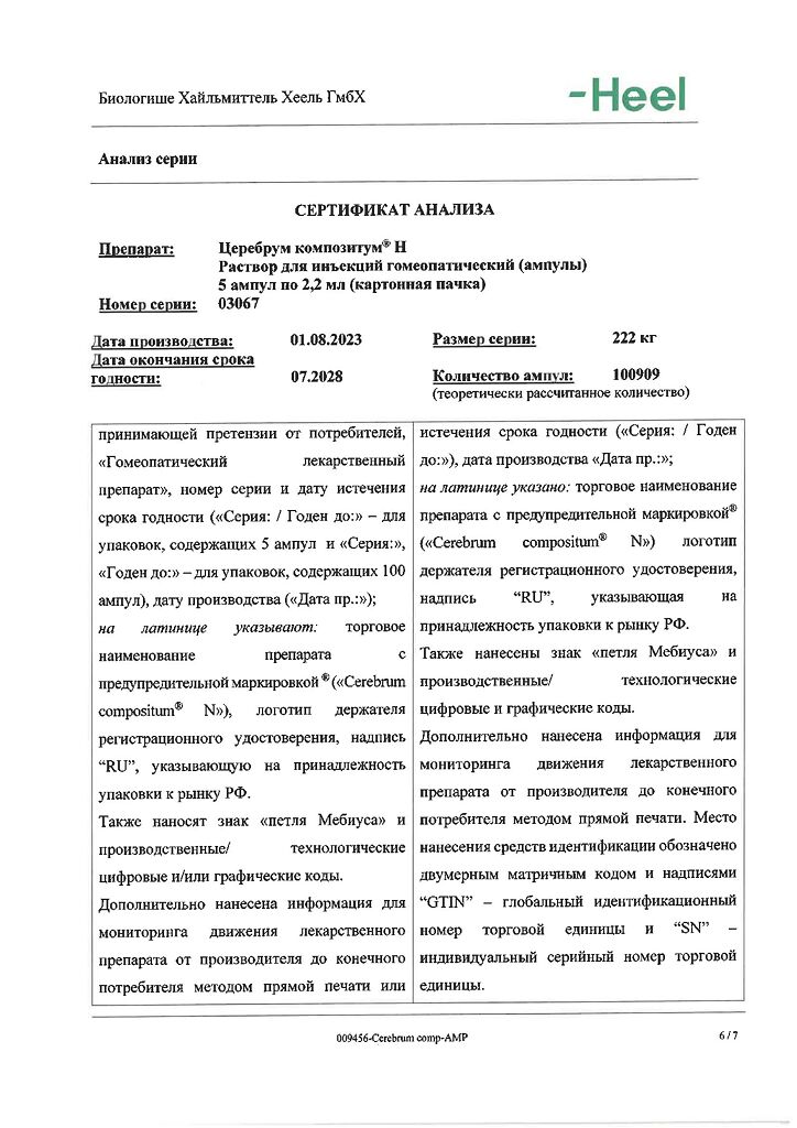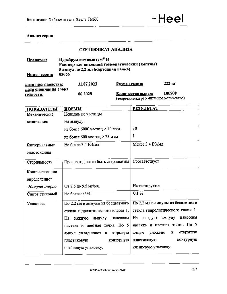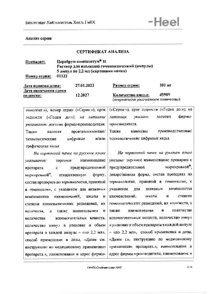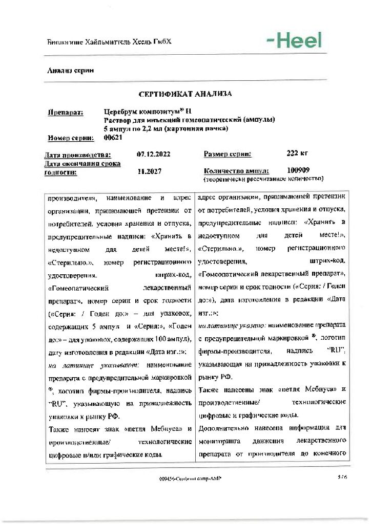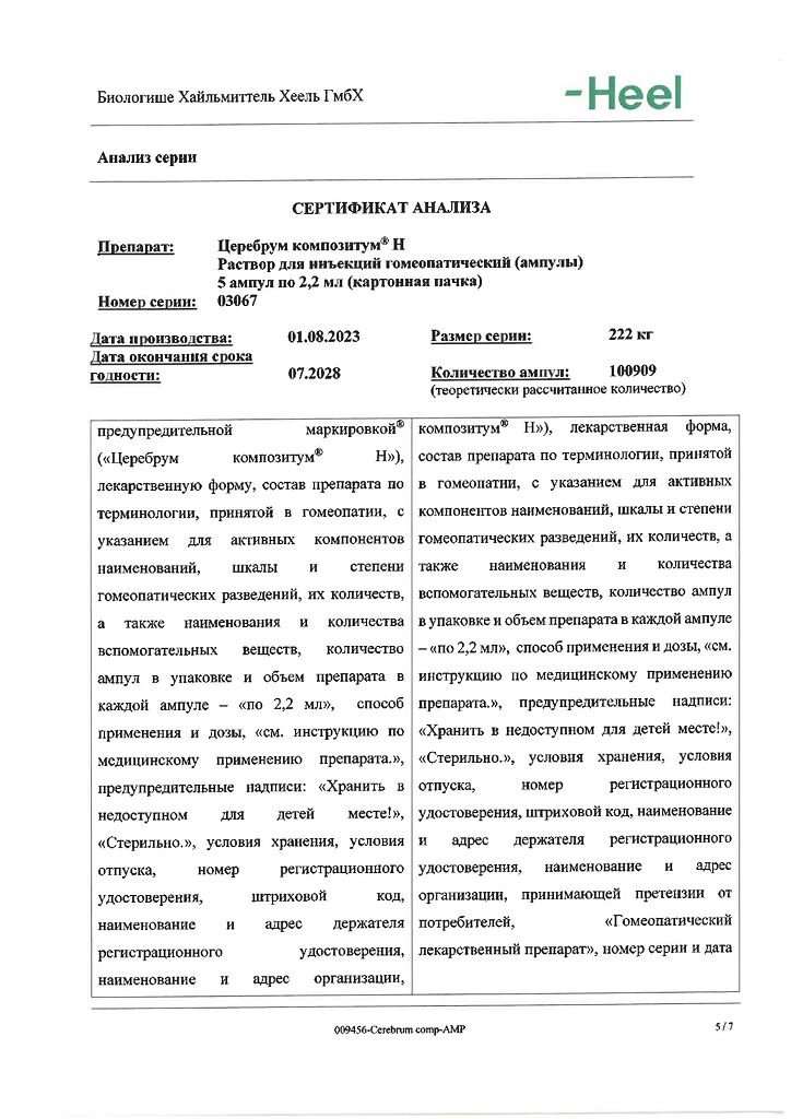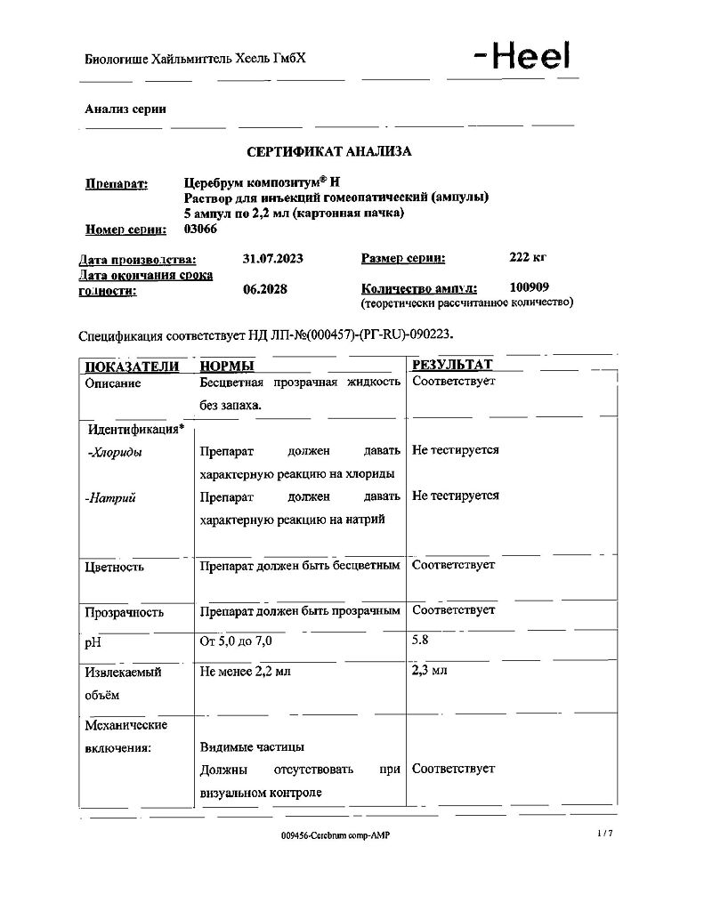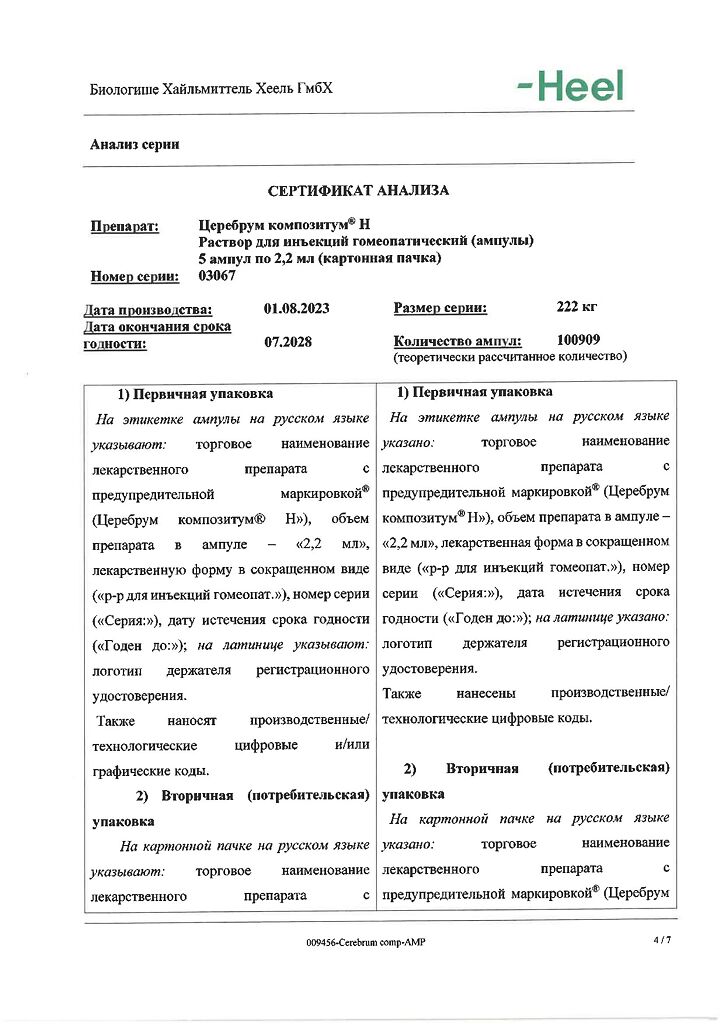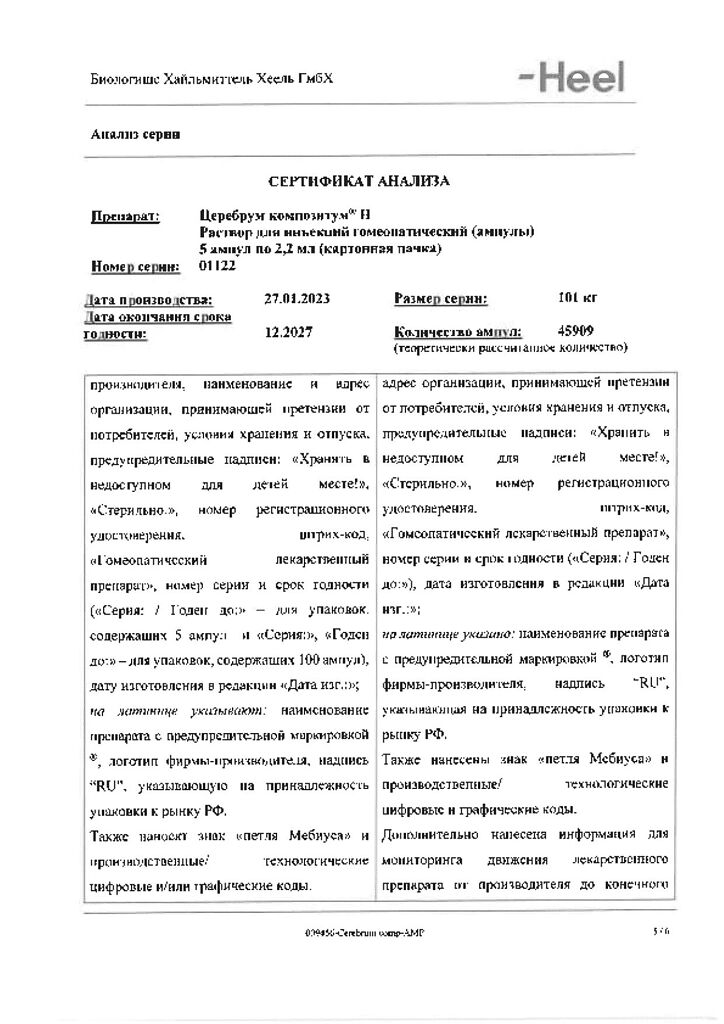 Документы Церебрум композитум Н раствор для в/м и п/к введ. 2,2 мл амп инд.уп. 5 шт