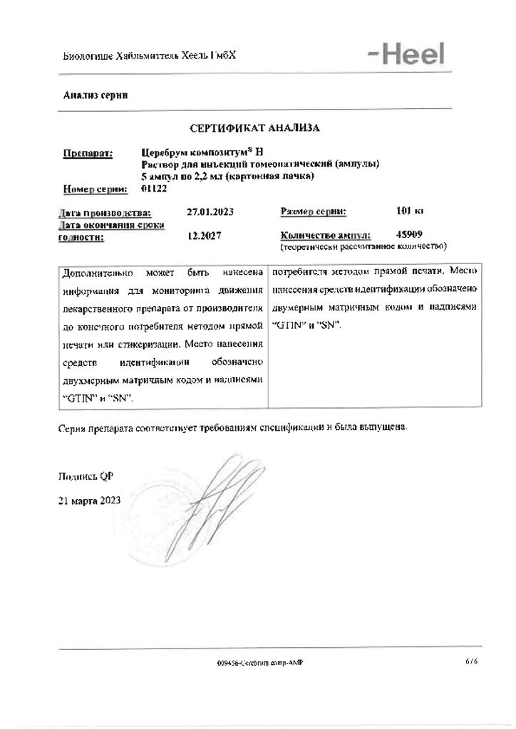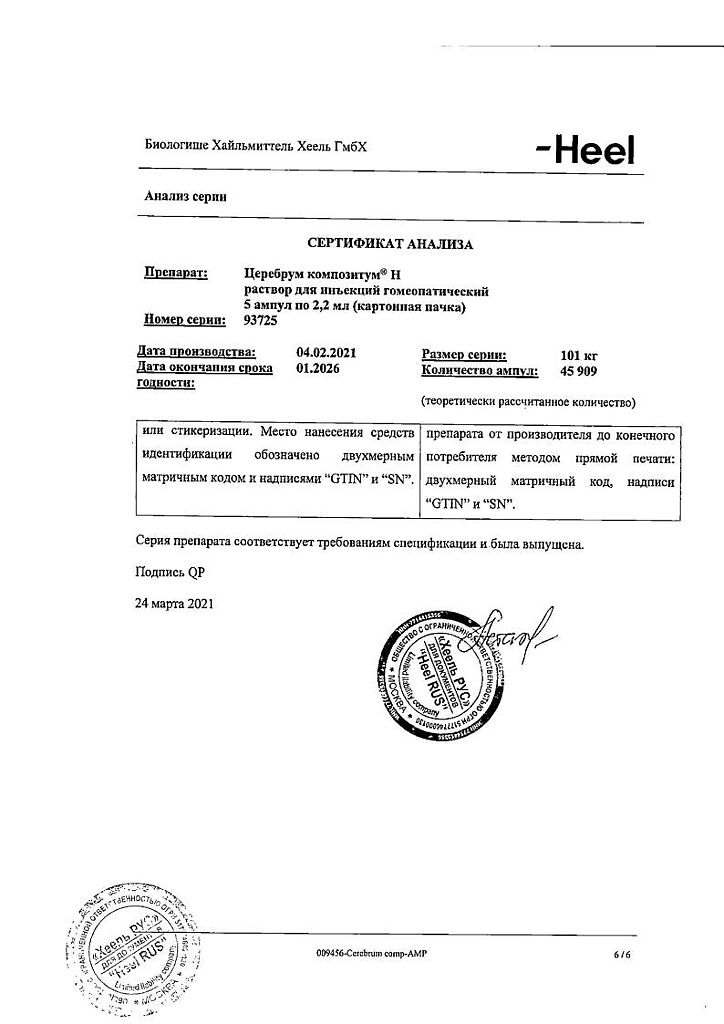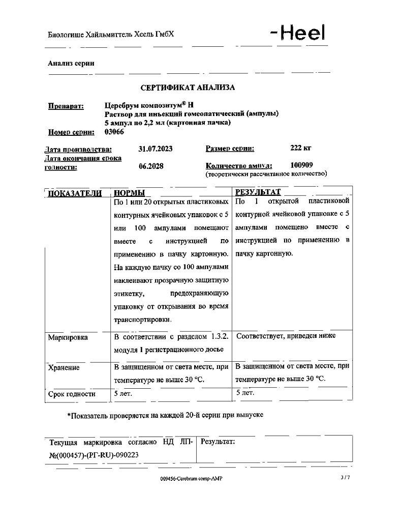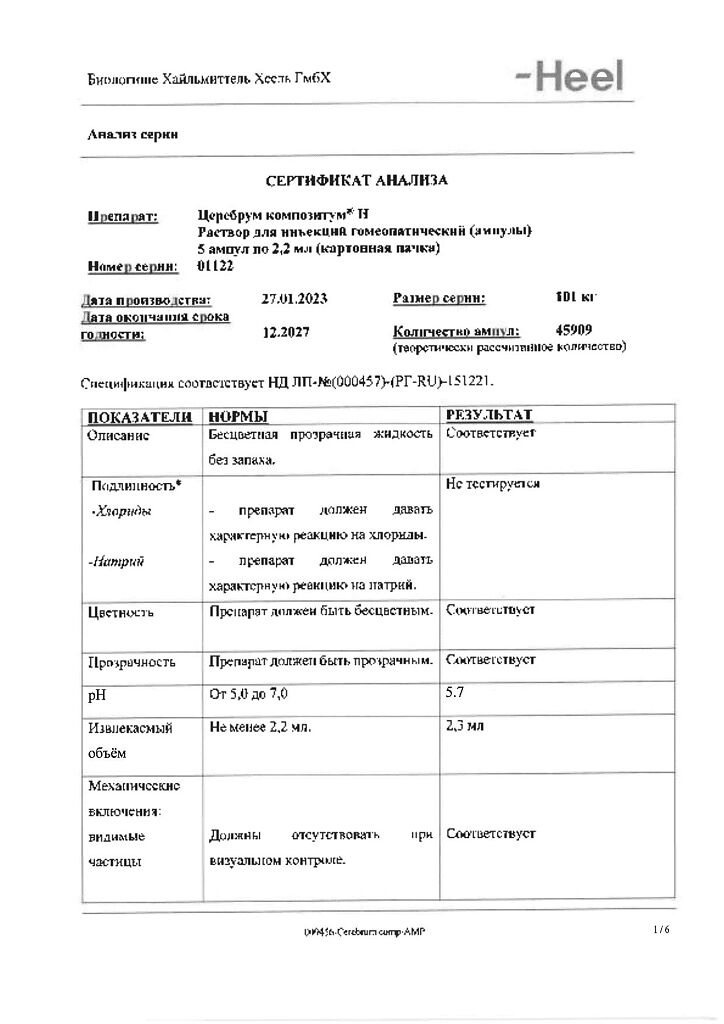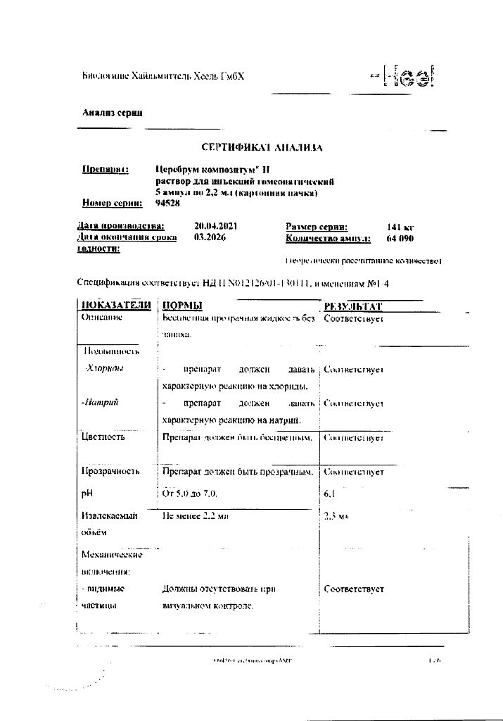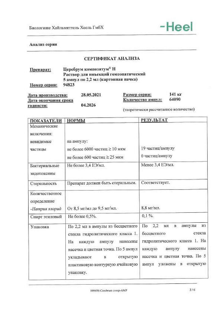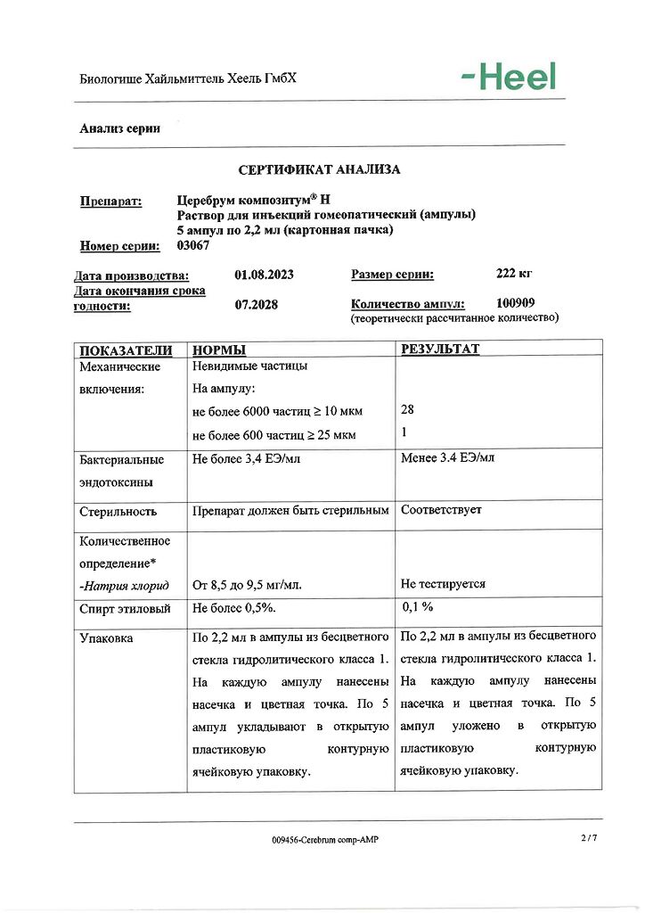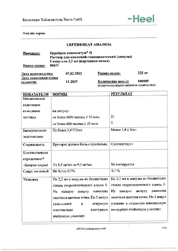 Документы Церебрум композитум Н раствор для в/м и п/к введ. 2,2 мл амп инд.уп. 5 шт