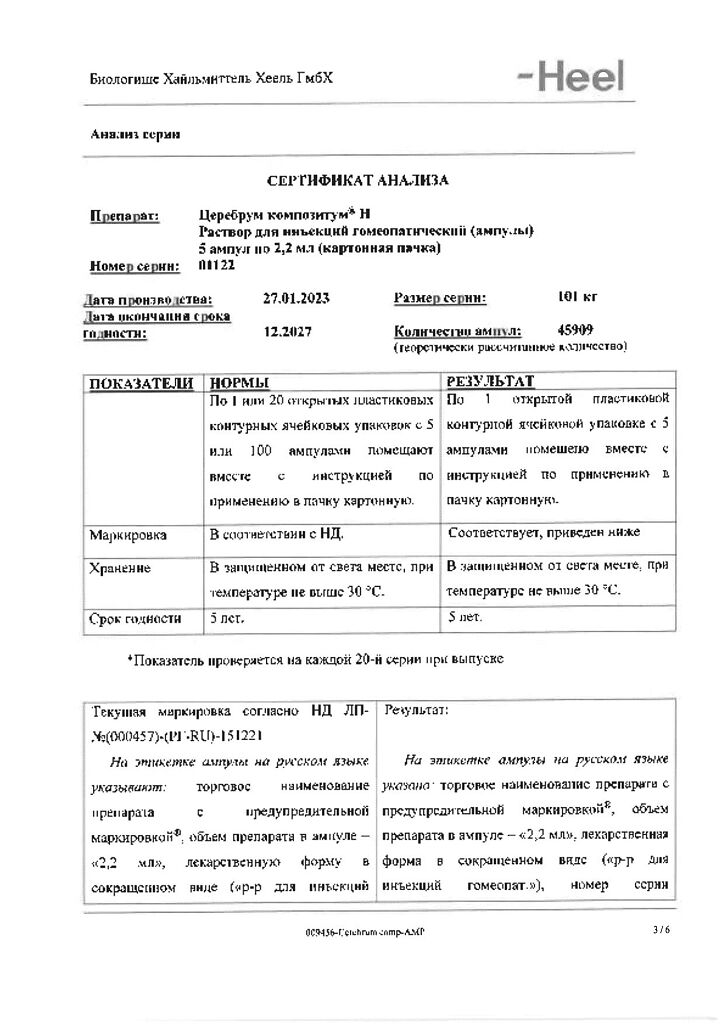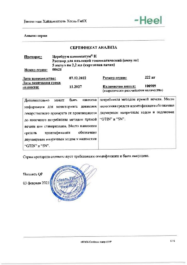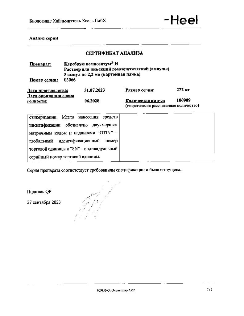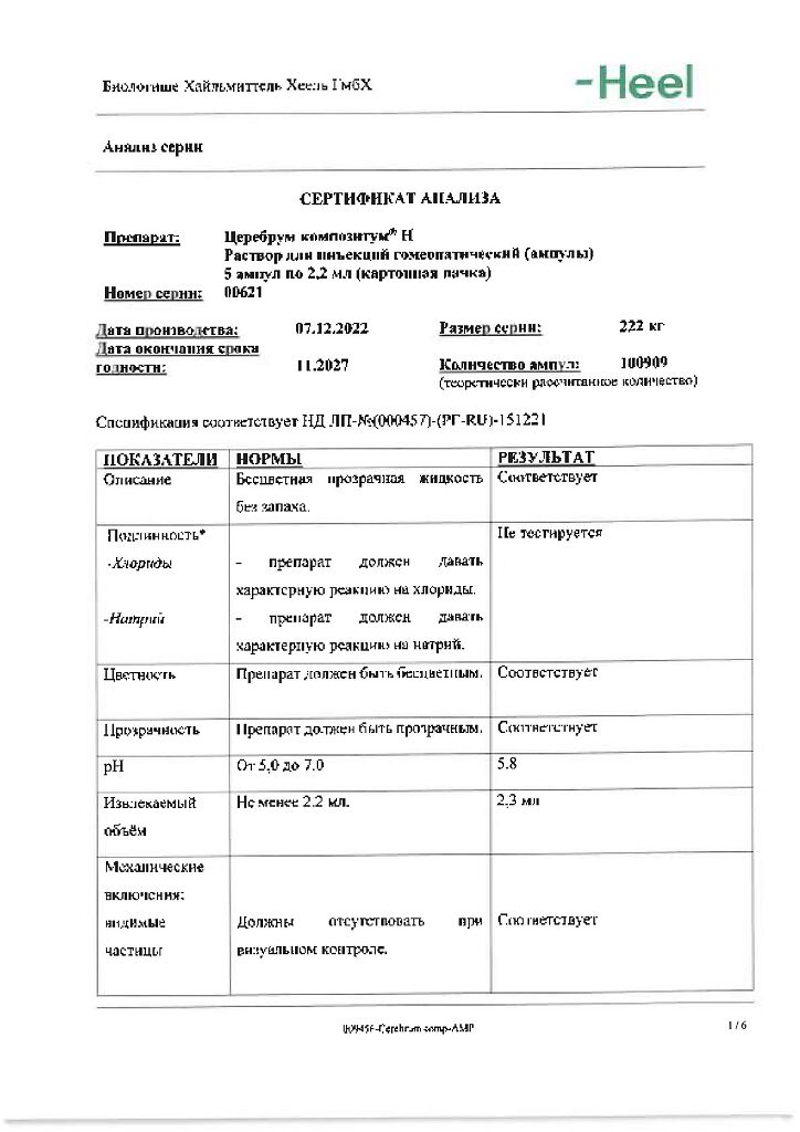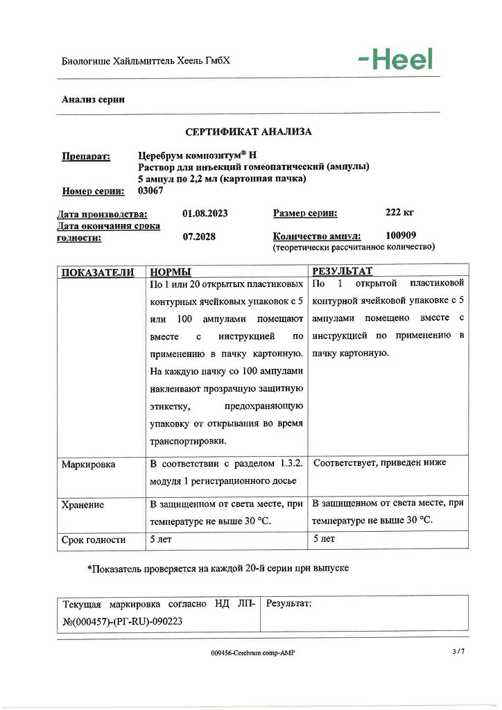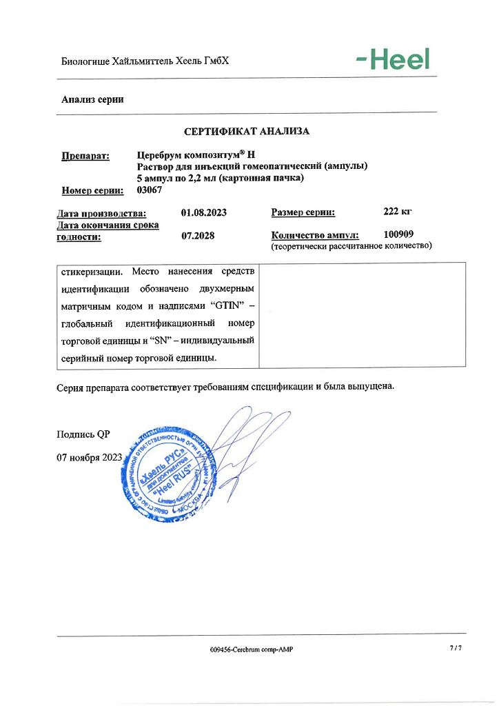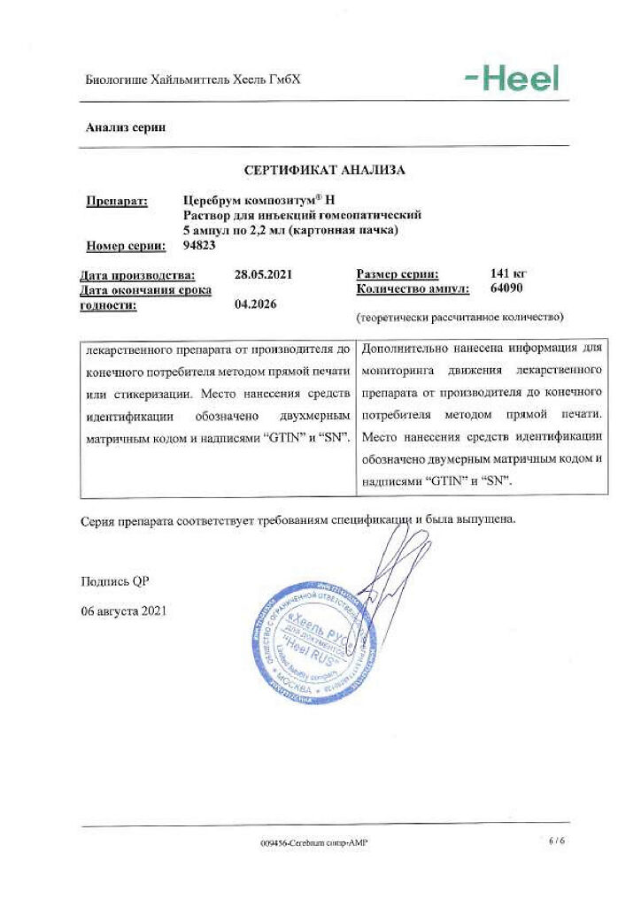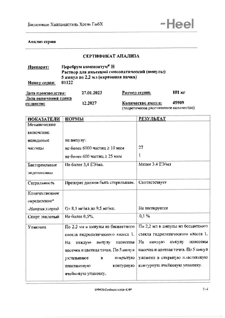Документы Церебрум композитум Н раствор для в/м и п/к введ. 2,2 мл амп инд.уп. 5 шт