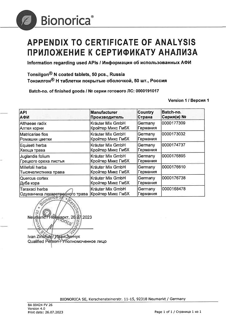 Действующее вещество: Алтея кор., Ромашка цв., Хвощ тр., Грец. орех лист, Тысячелистник тр., Дуб кор., Одуванчик тр.