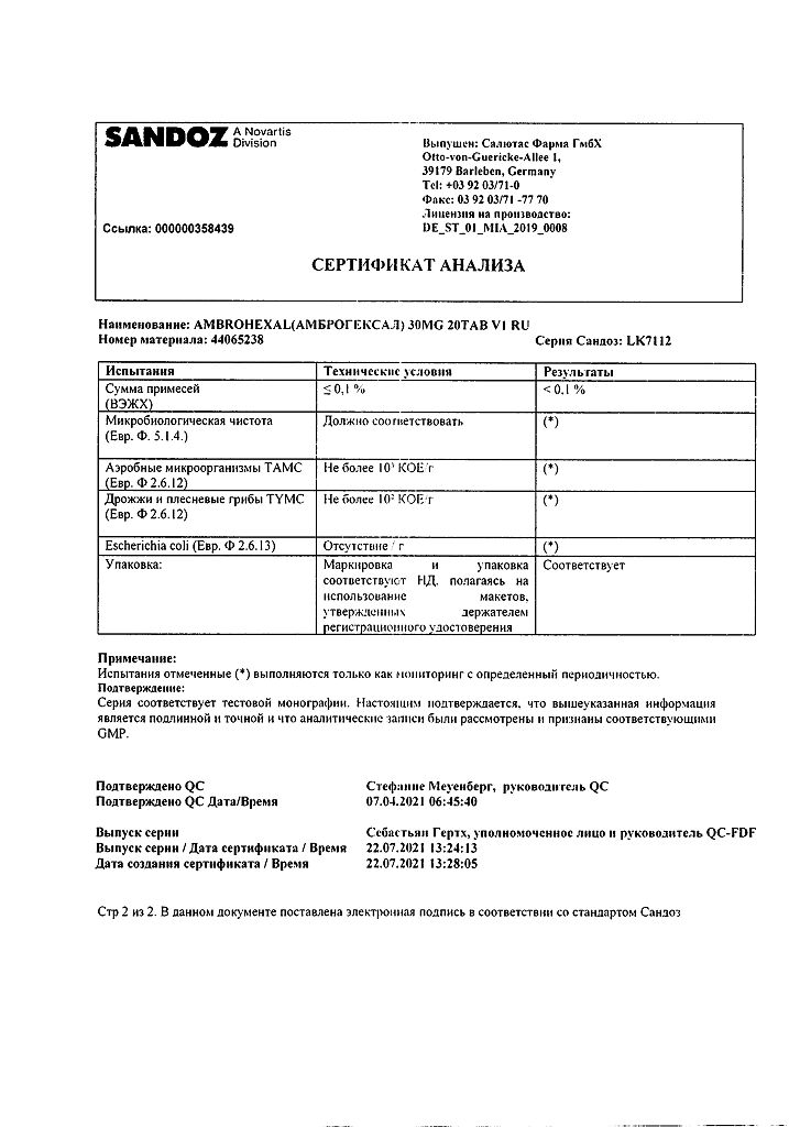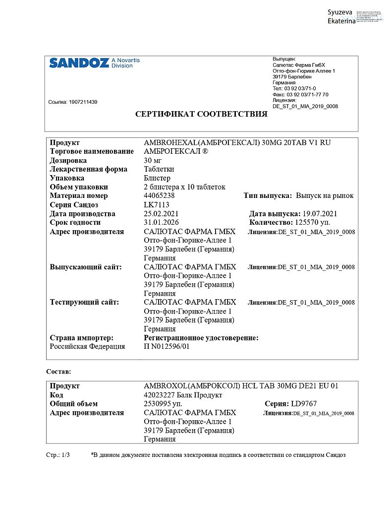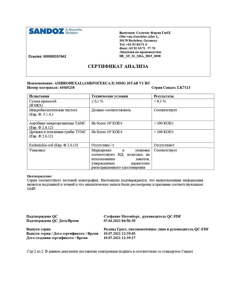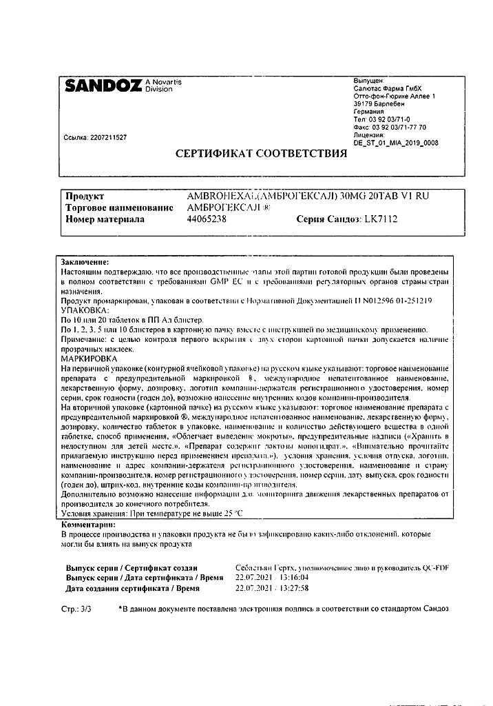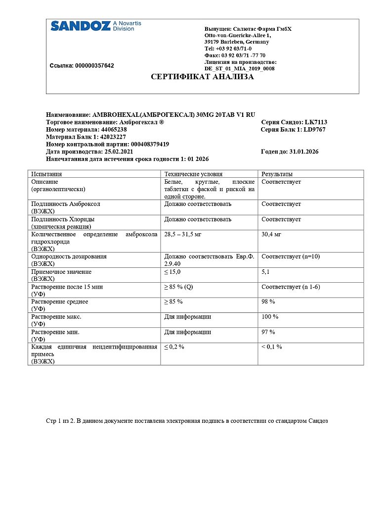 Амброгексал таблетки 30 мг 20 шт: 10 отзывов покупателей и фармацевтов