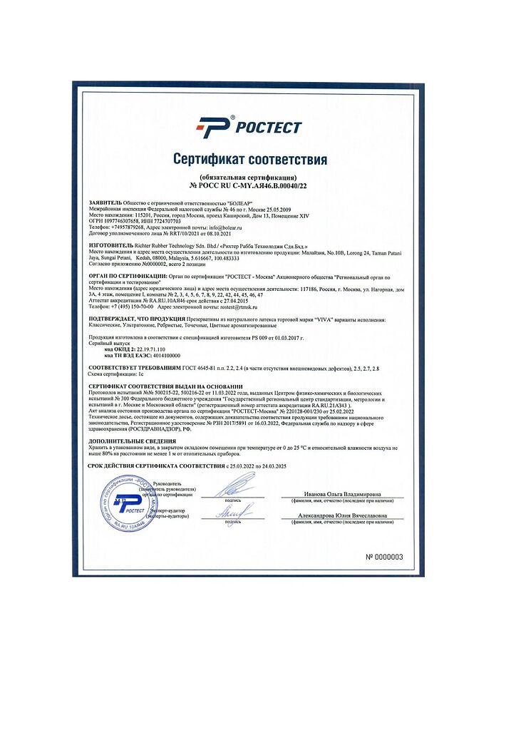 Производитель: Richter Rubber Technology Sdn. Bhd., Малайзия