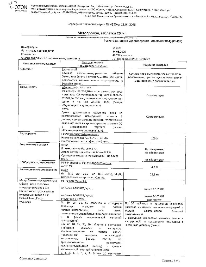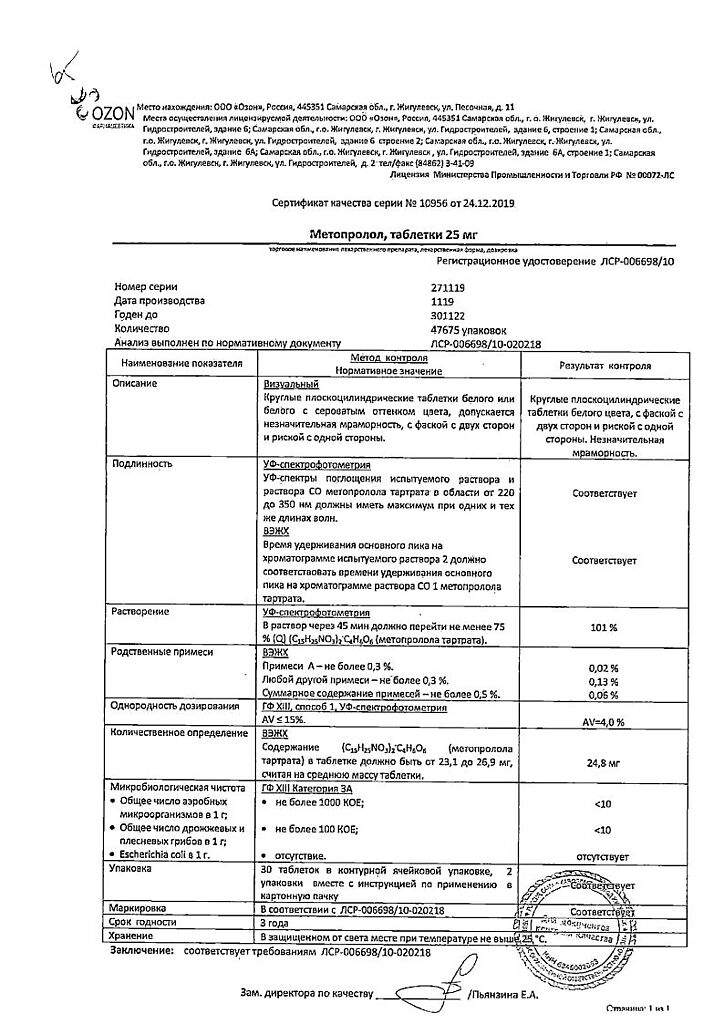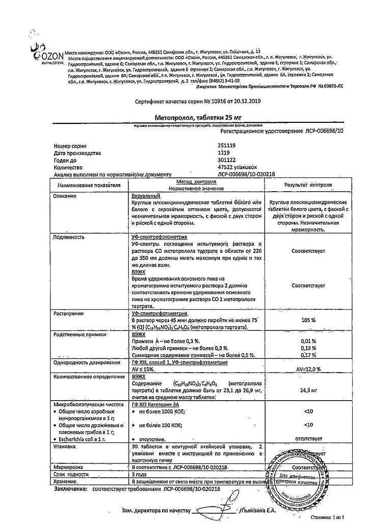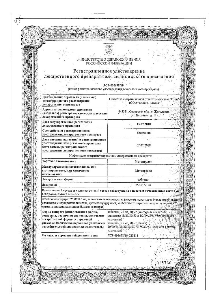 Действующее вещество: Метопролол