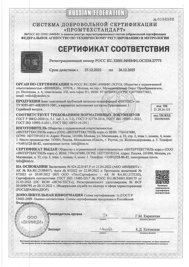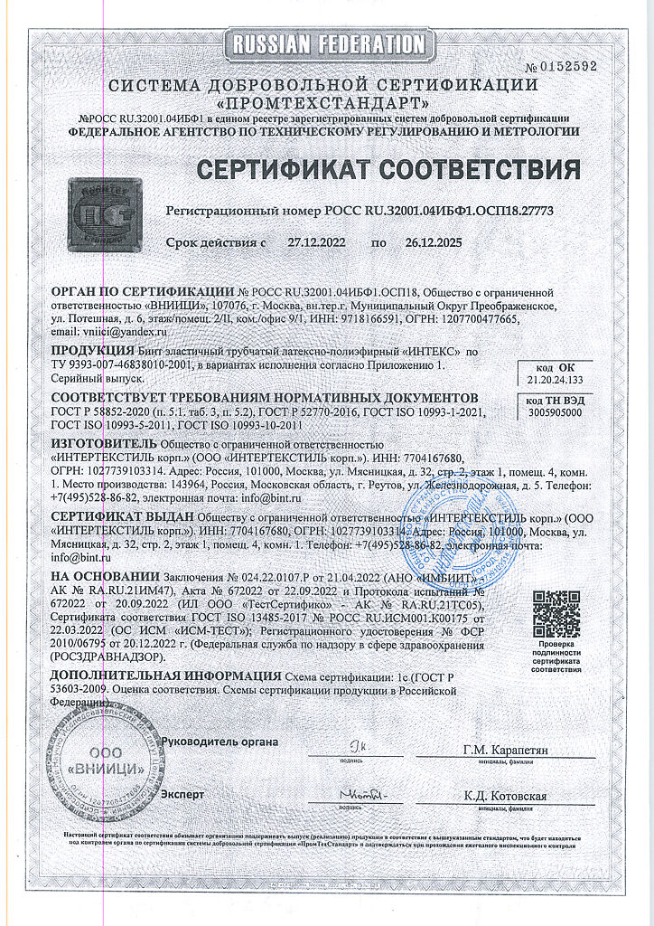 Производитель: ИНТЕРТЕКСТИЛЬ корп., Россия