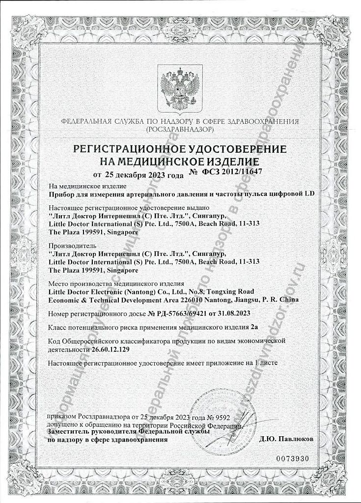 Производитель: Little Doctor International (S) Pte. Ltd., Сингапур