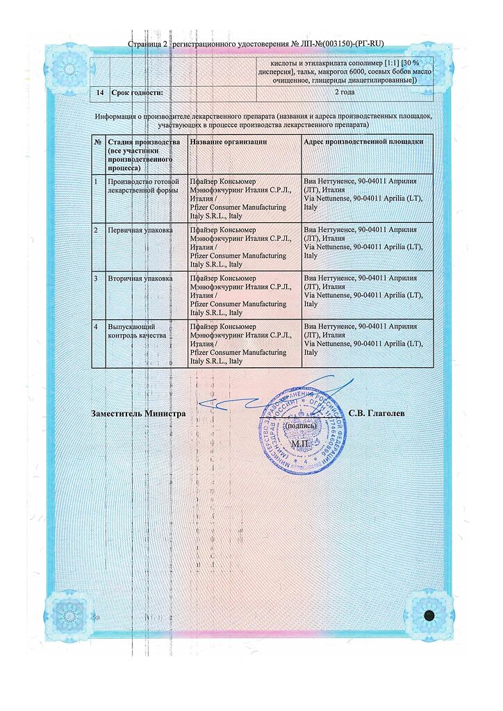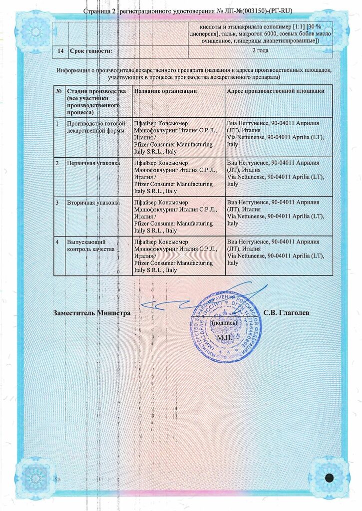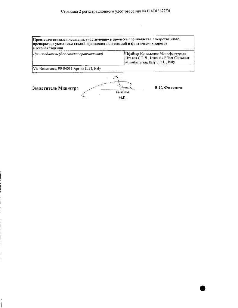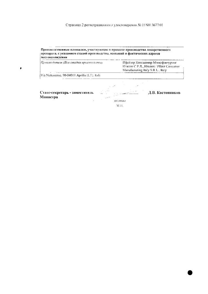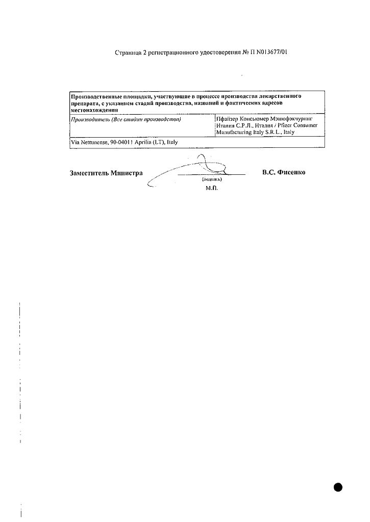 Производитель: Пфайзер Консьюмер Мэнюфэкчуринг Италия С.Р.Л., Италия