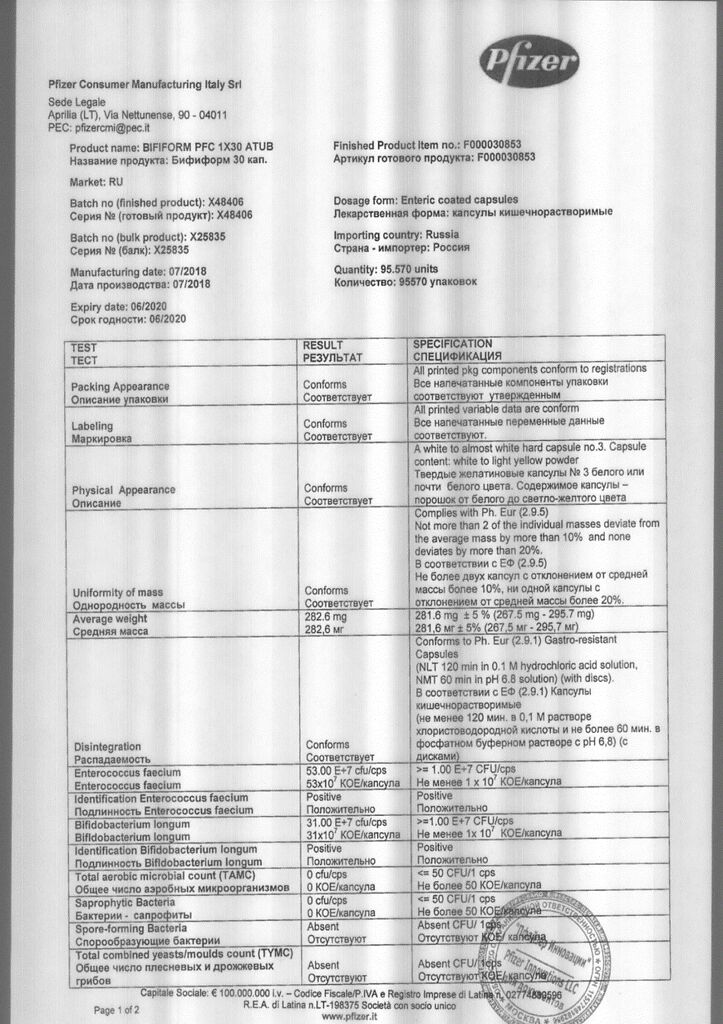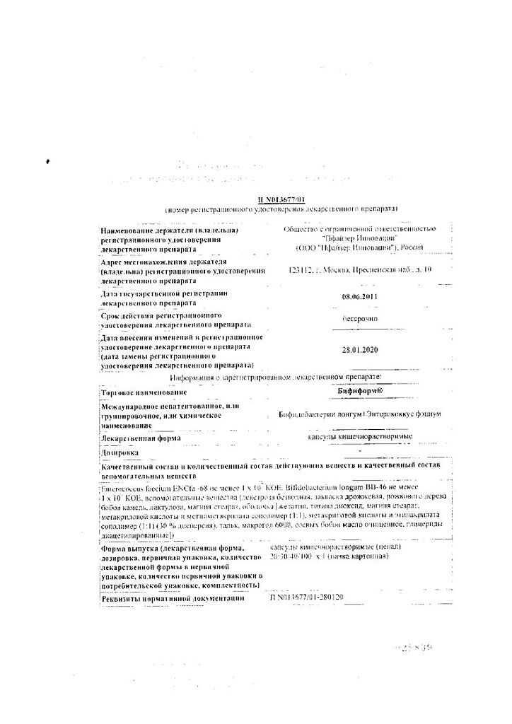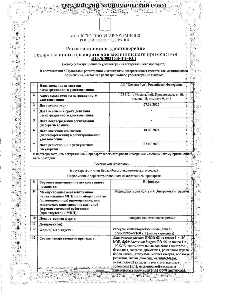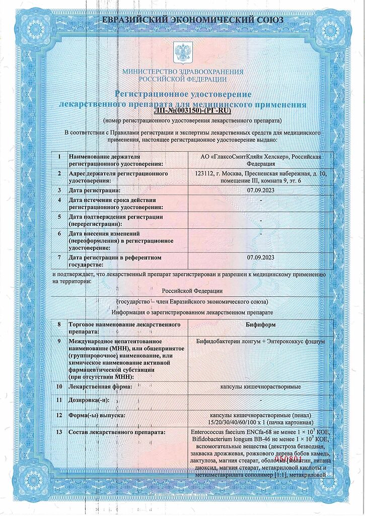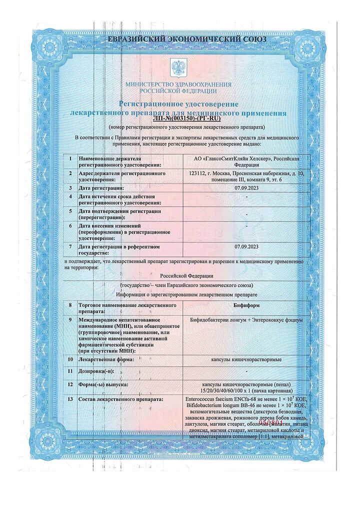 Действующее вещество: Бифидобактерии лонгум, Энтерококкус фециум